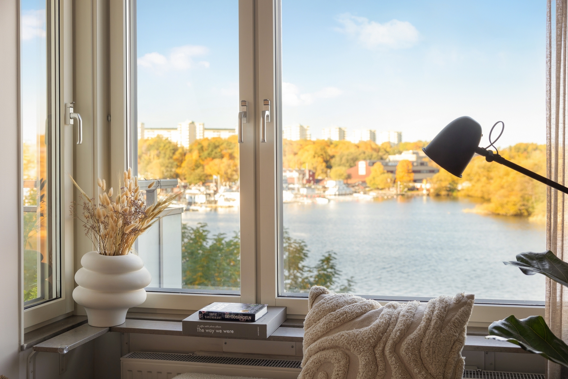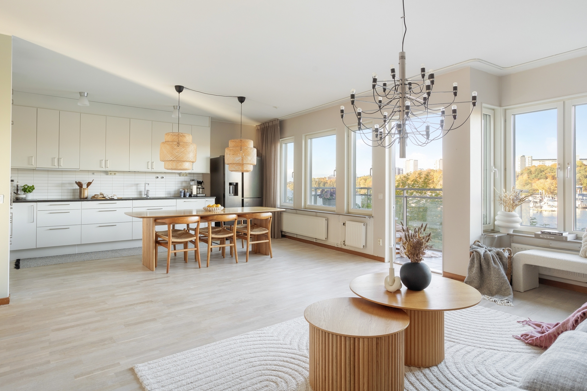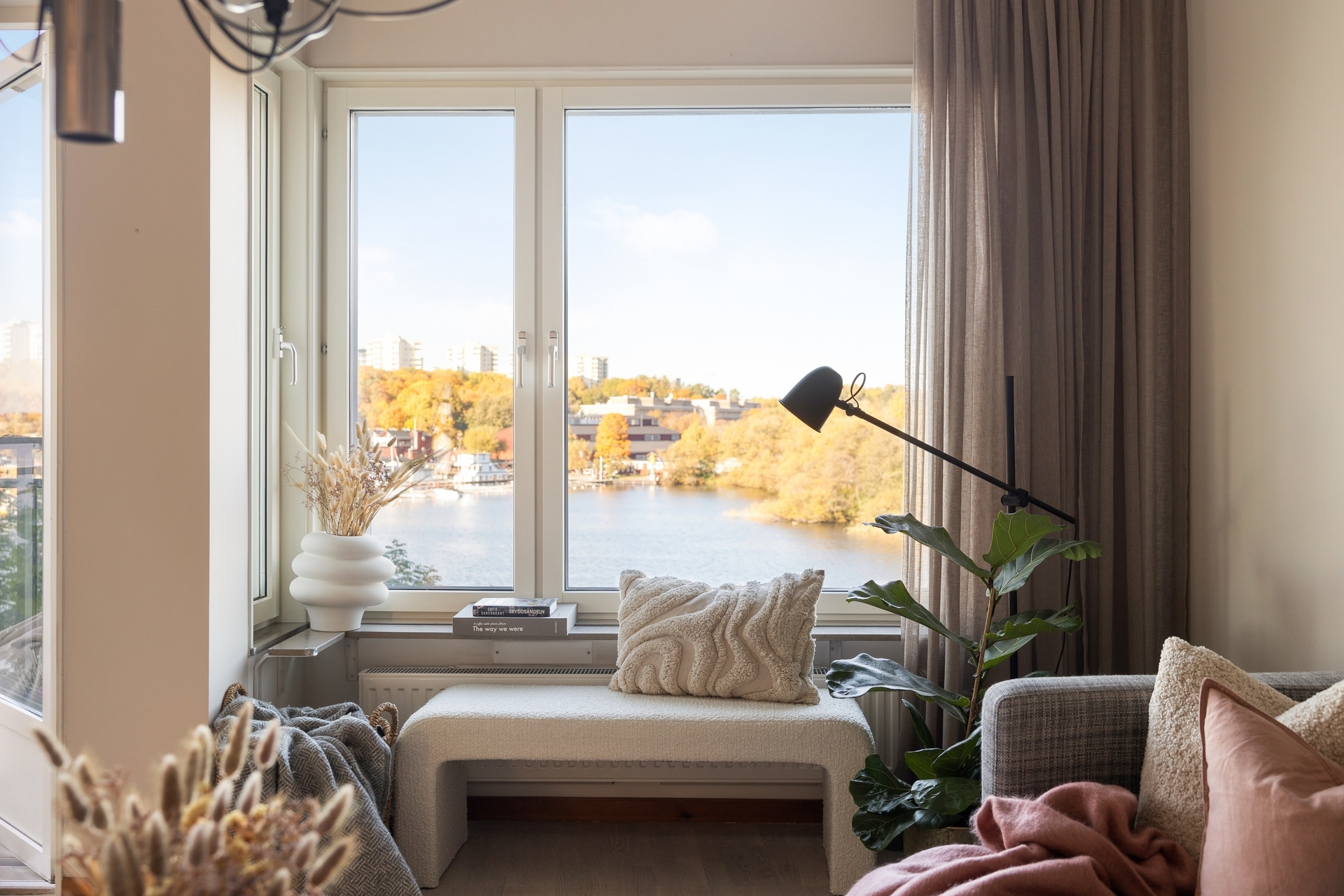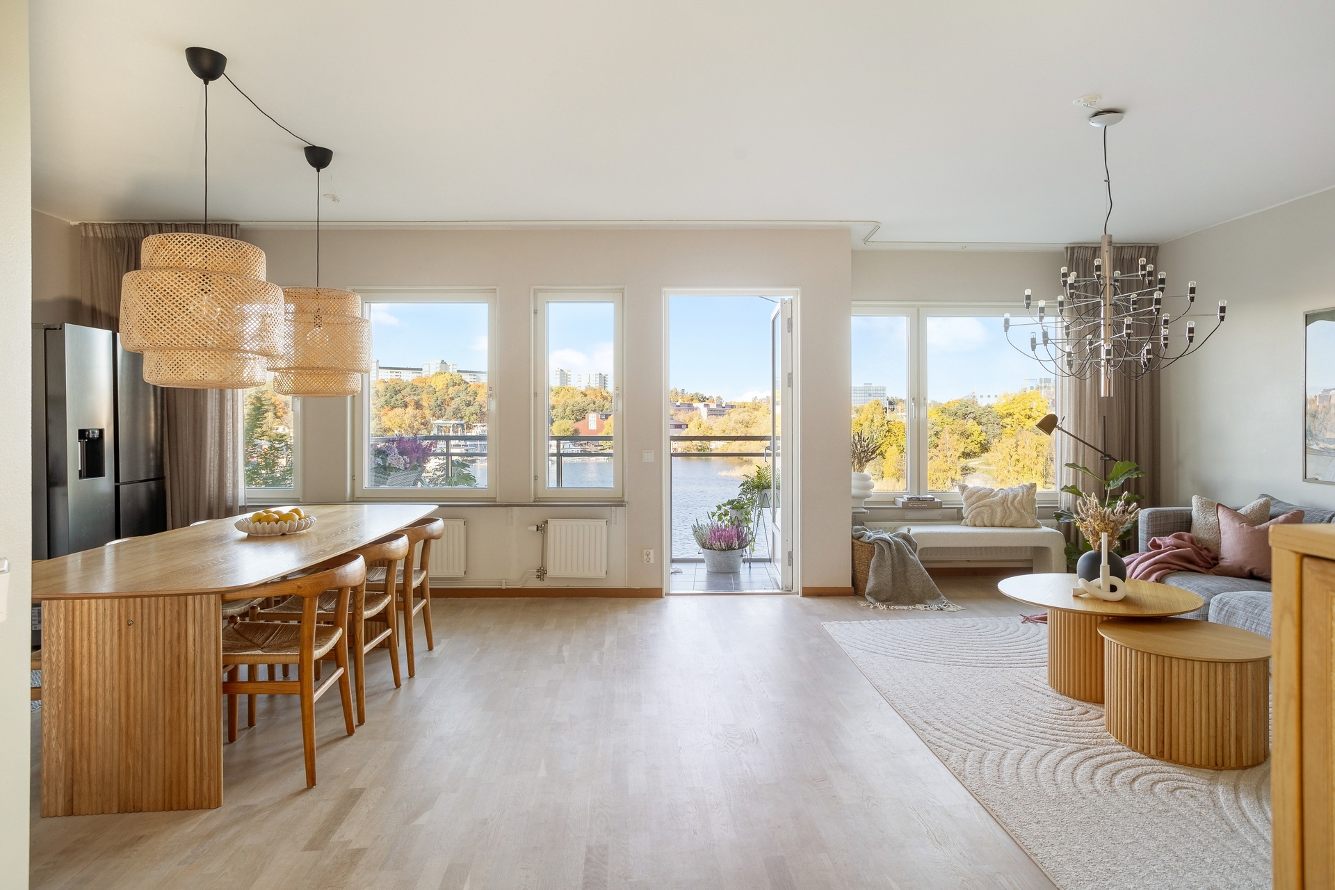 Fantastiskt vardagsrum med fönsterpartier som gör att lägenheten flödar i ljus. Här har du direkt närkontakt med vattnet och kan se båtarna segla förbi och vidare in genom Karlbergs kanal. Öppna sociala ytor mellan kök och vardagsrum gör att boendet lämpar sig perfekt för sociala tillställningar. Rummet erbjuder möjlighet för flexibel möblering med större soffgrupp/hörnsoffa och tillhörande vardagsrums möbler. Från rummet nås även balkongen med utsikt över vattnet.