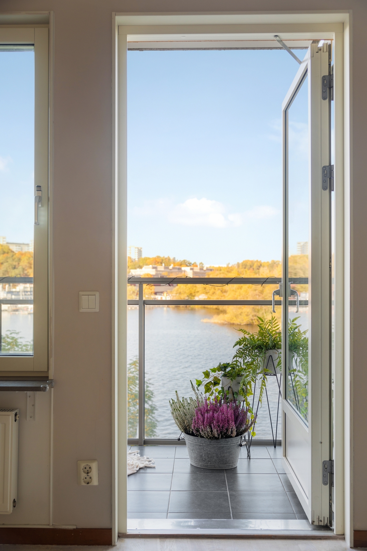 Balkong med oslagbart läge med utsikt direkt över vattnet. Här kan ni duka fram ert favoritvin och kopplar av i kvällssolen och se solen gå ner i väst.