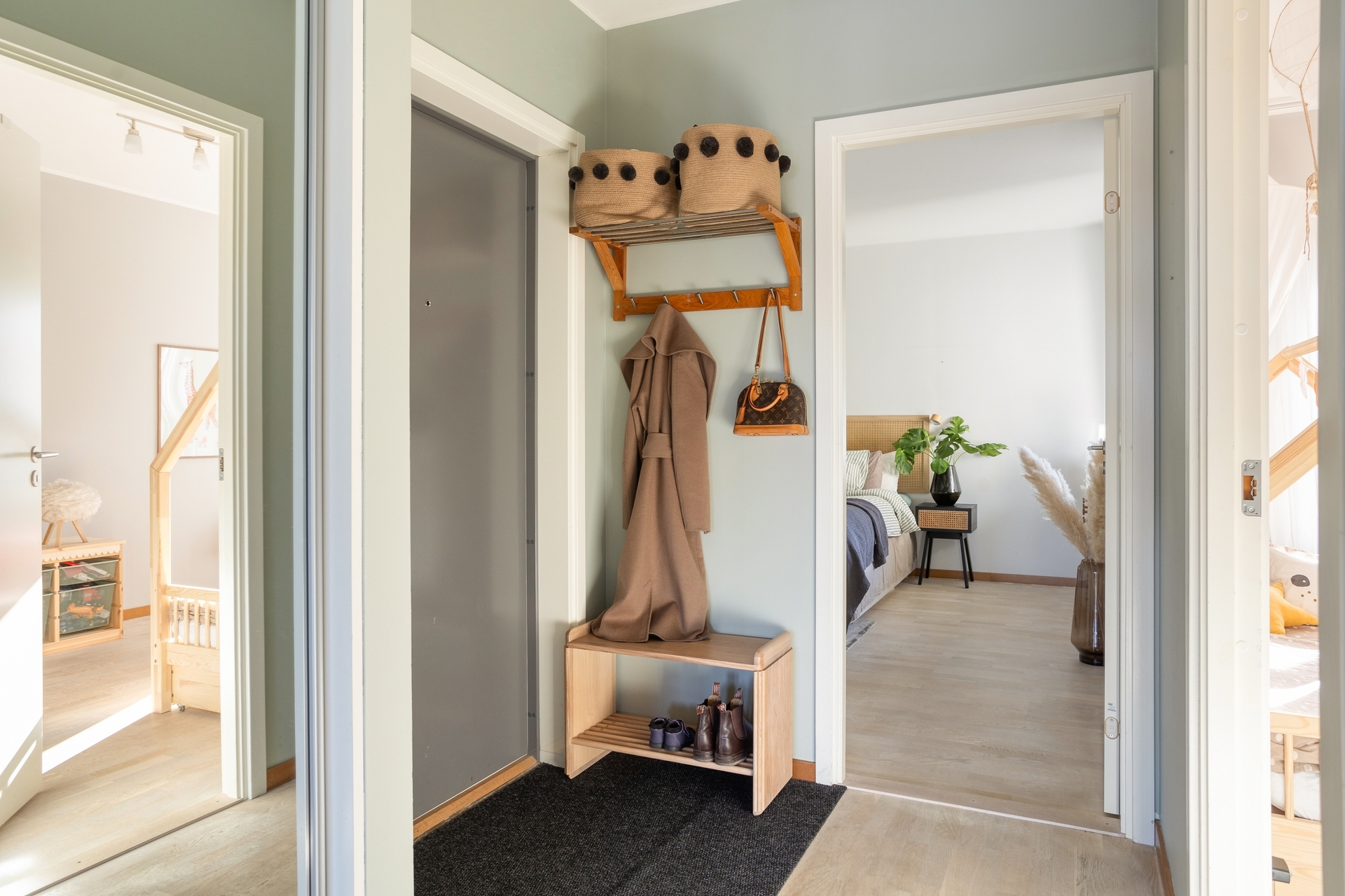 - Cykel/Barnvagnsförråd: Förvaring för barnvagn och cyklar finns i entréplan.