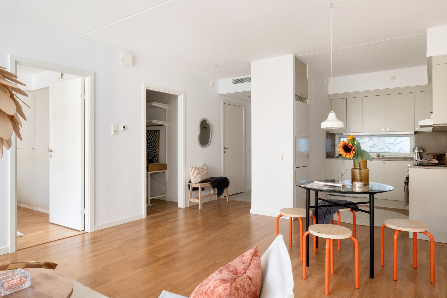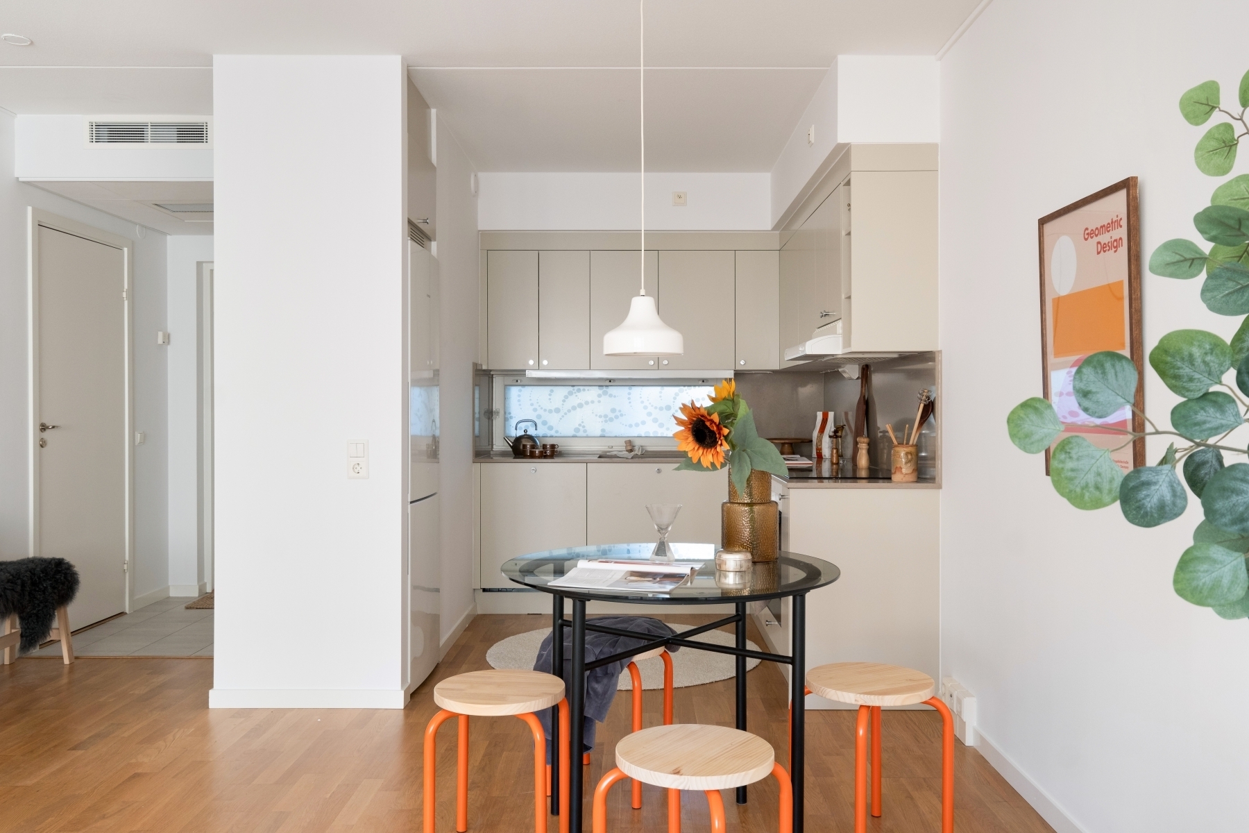 Välkommen till denna generösa och rogivande tvårummare om 58 kvm, belägen mot en stillsam innergård som erbjuder en harmonisk boendemiljö. Bostaden har en öppen och ljus planlösning med stora fönsterpartier som släpper in rikligt med dagsljus. Köket har en harmonisk färgsättning med sandfärgade luckor och bänkskiva i komposit, och rymmer både vardag och umgänge på ett naturligt sätt. Här möts du av en välplanerad planlösning med ett rymligt och inbjudande vardagsrum, perfekt för både avkoppling och sociala stunder. Det lugna sovrummet är en rofylld oas med generös förvaring och fransk balkong. Stilrent badrum med bra förvaring, dusch (plats för badkar) samt både tvättmaskin och torktumlare för maximal bekvämlighet.