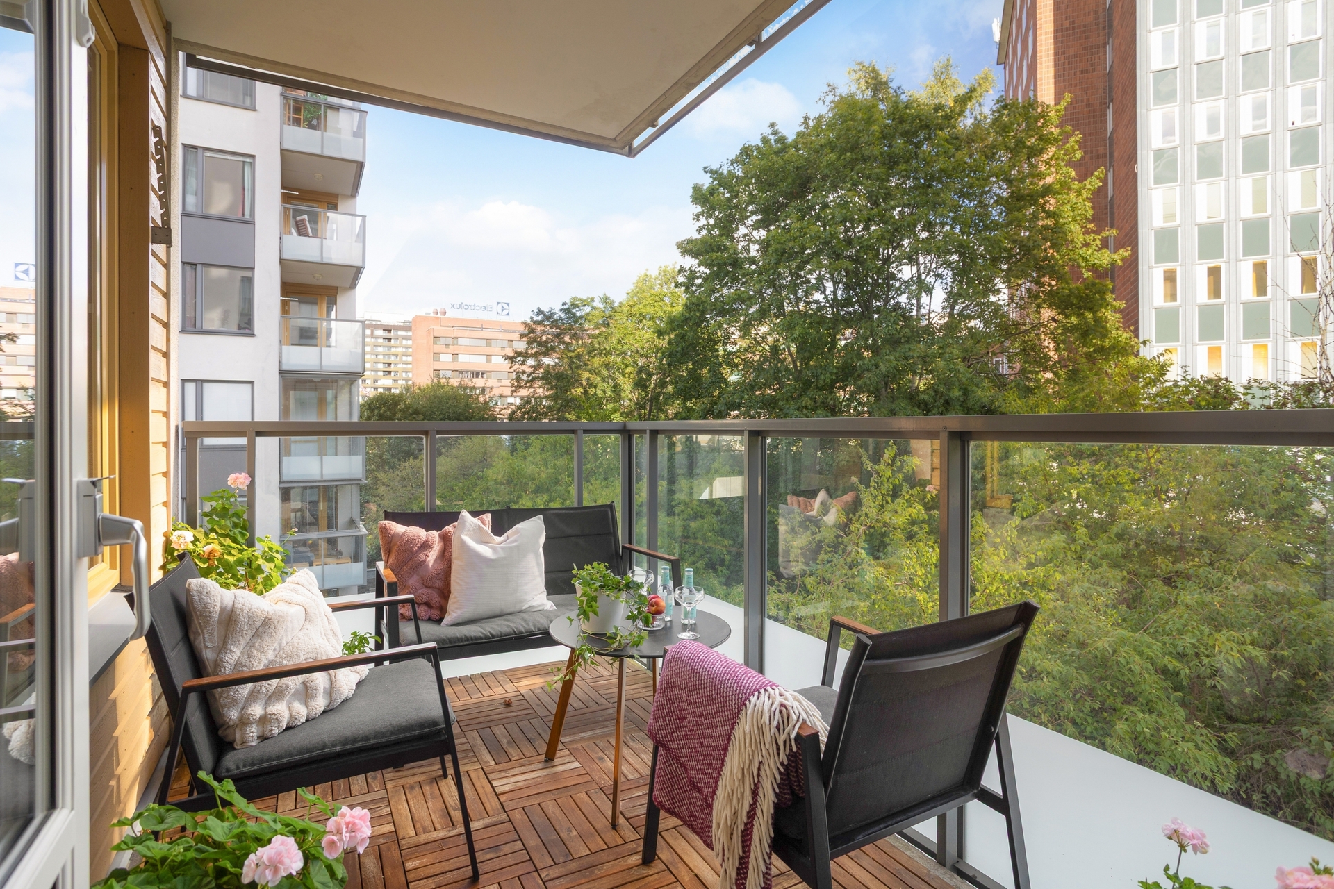 Lungt gårdsläge - balkong med eftermiddagssol.