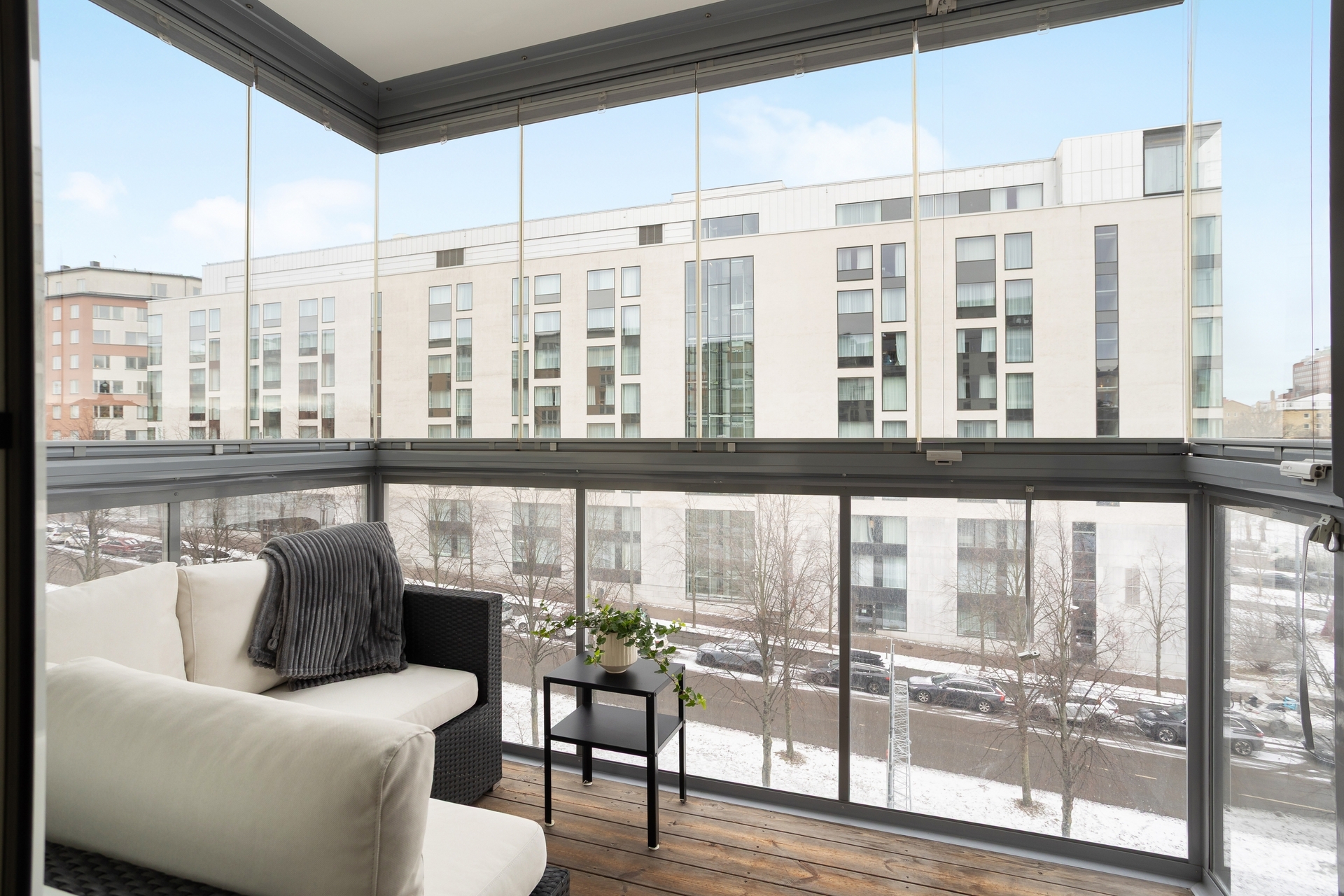 Stilren 2:a i högt med exklusiva material och solig balkong.