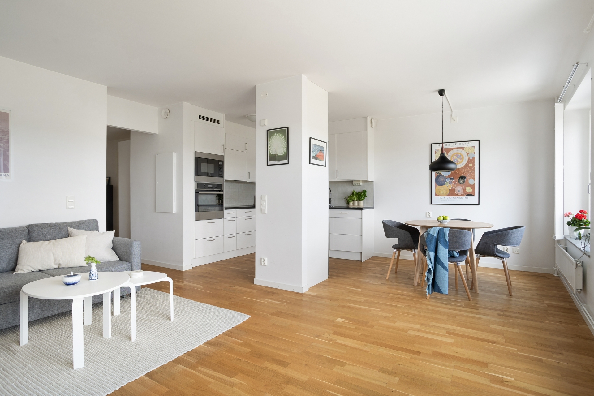 Varmt välkommen till en ljus och smakfullt planerad tvåa med vacker utsikt över grönska, Karlbergskanalen och Mälarens glittrande vatten. Här erbjuds ett hem med social och trivsam planlösning, stora fönsterpartier och en rymlig balkong mot innergård. Kök och vardagsrum samspelar på ett naturligt sätt och skapar en inbjudande miljö för både middagar, vardag och umgänge. Bostaden präglas av stilrena materialval, praktiska lösningar, vacker ekparkett och välplanerade ytor. Det rofyllda sovrummet har god förvaring och badrummet är modernt utrustat med både tvättmaskin och torktumlare. Här bor du med ett lugnt och attraktivt läge nära strandpromenader, badbryggor, restauranger, gym, tunnelbana, city och service i Lindhagens Galleria. Stabil förening med låg belåning om 4 511 kr/kvm, övernattningslägenhet för medlemmarna samt lediga garageplatser. Ett mycket trivsamt hem med både utsikt, ljus och läge.