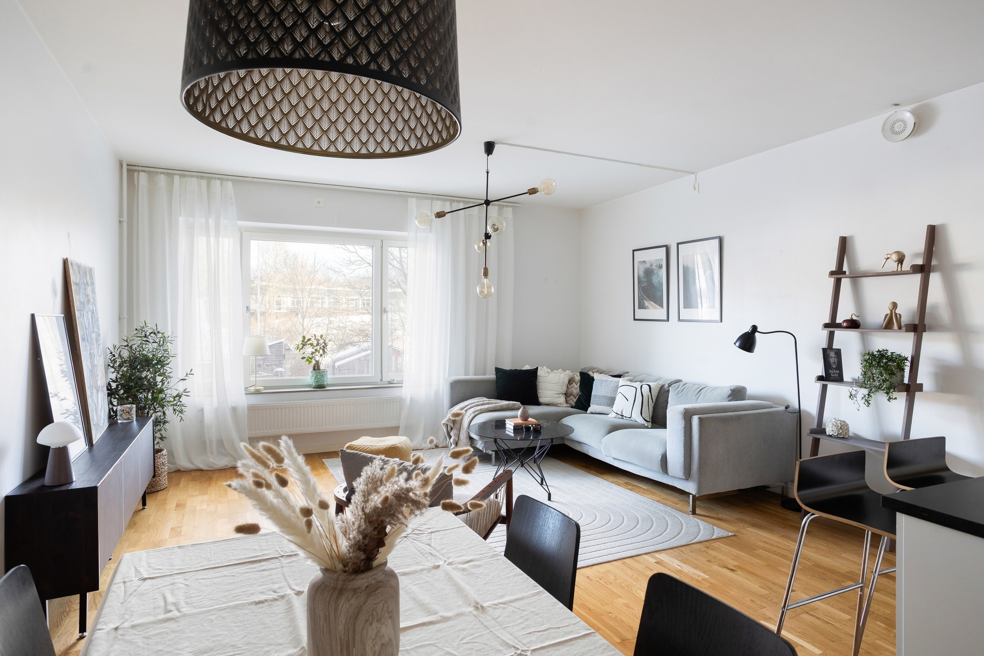 Optimalt planerad med separat sovalkov och milsvid utsikt.