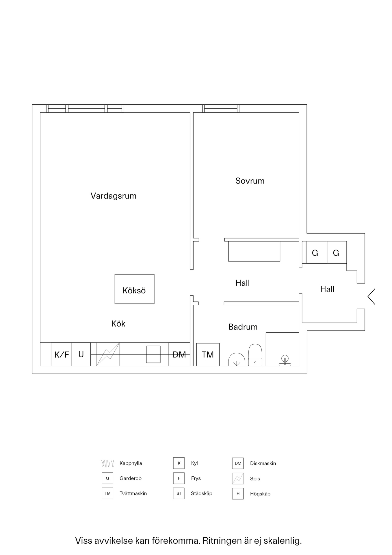 Väldisponerad tvåa högst upp i huset.