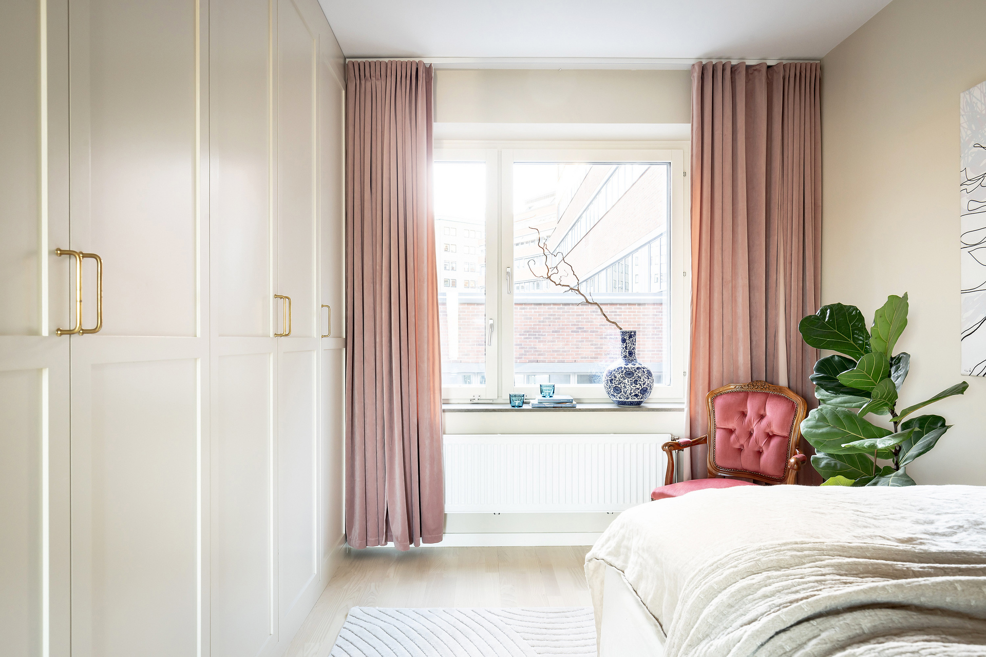 Högt upp i huset, walk-in-closet och solig inglasad balkong i väst.