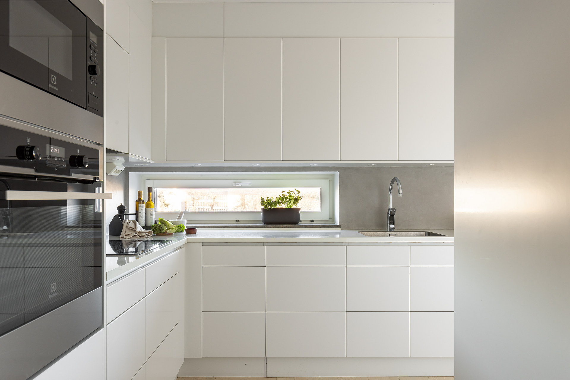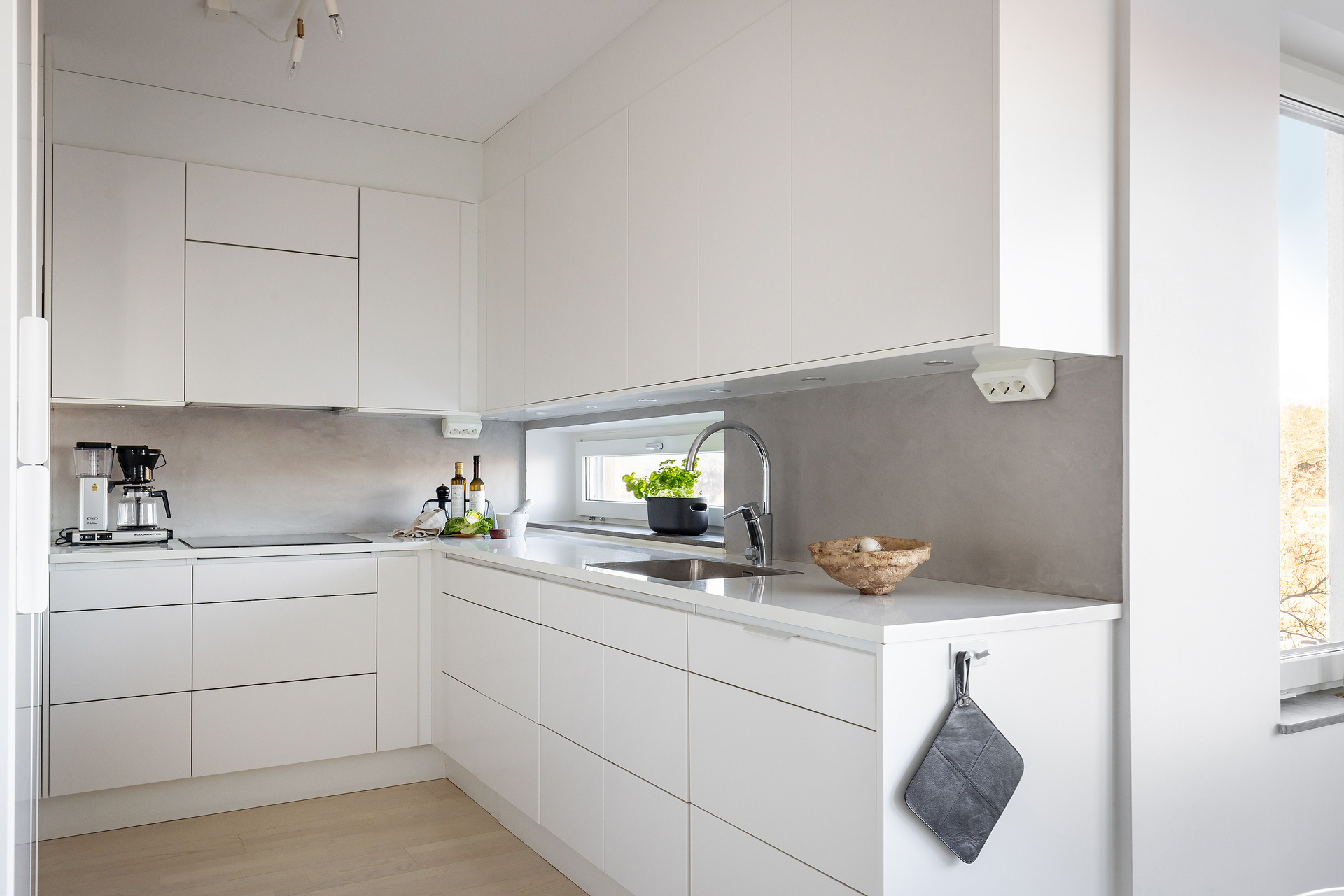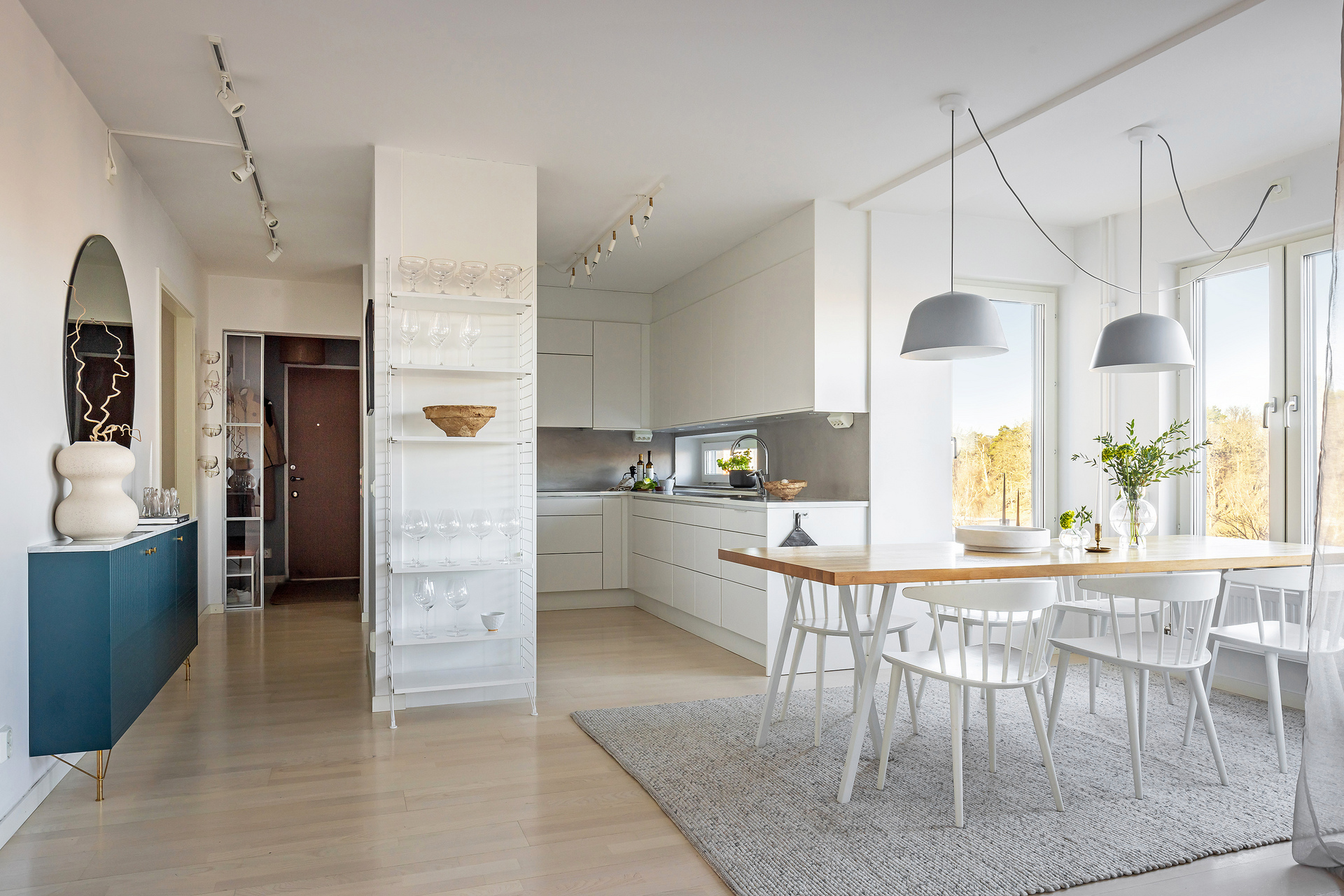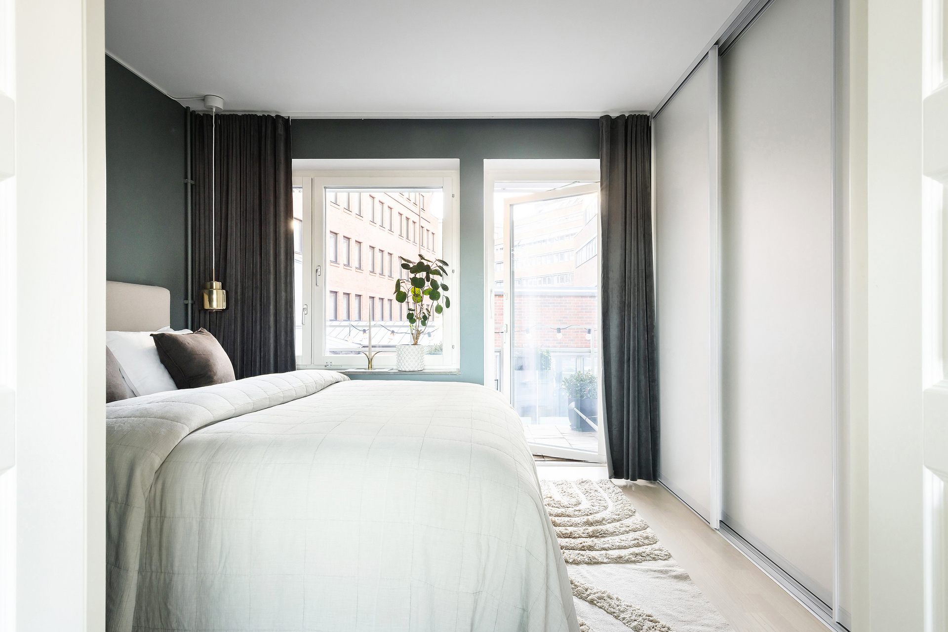 Dubbla balkonger, sjöglimt, 2,60 m i tak och plats för köksö i köket.