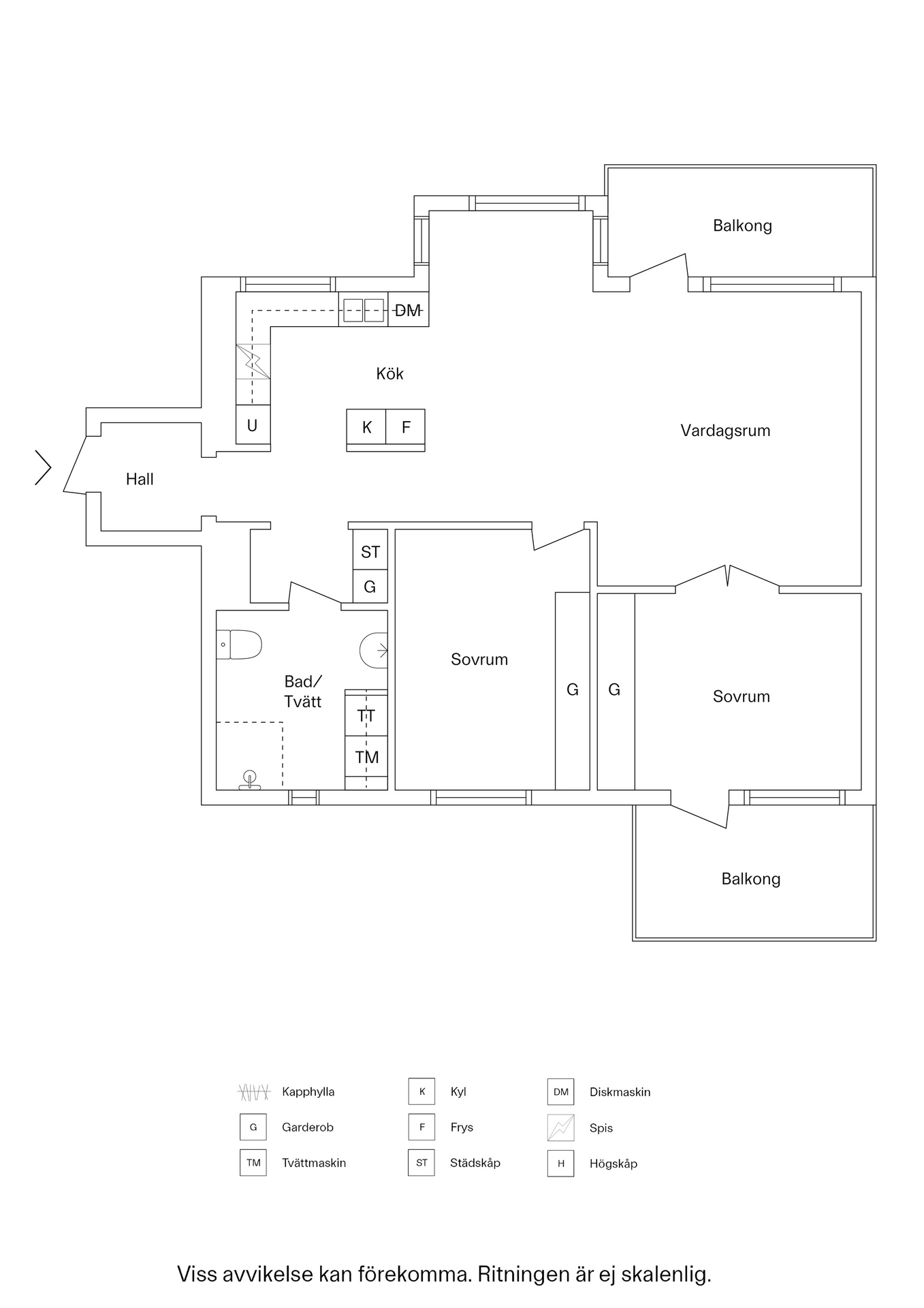 Genomgående och ljus 3:a med 2 balkonger.