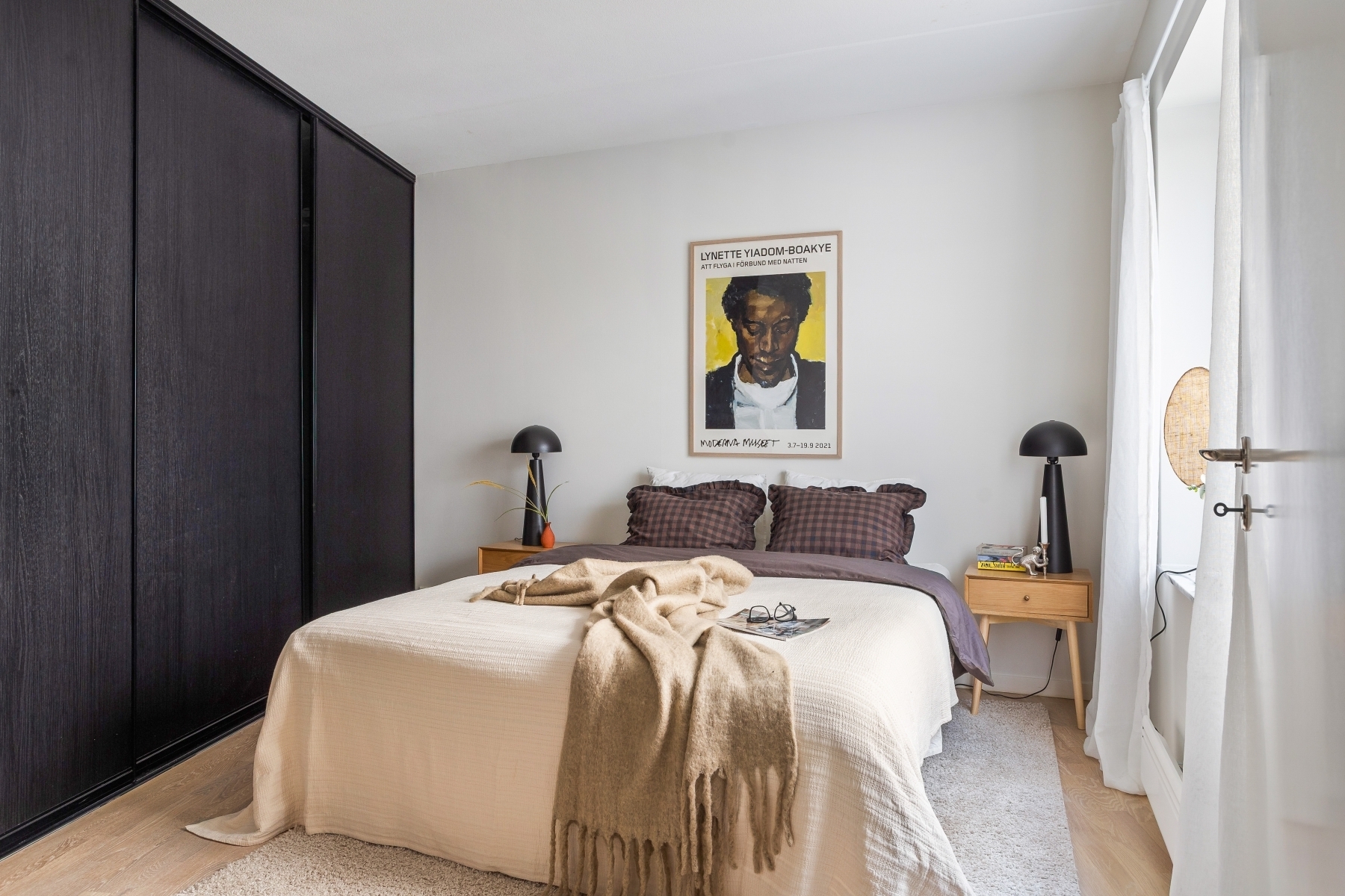 Rymligt sovrum med plats för större säng, skrivbord och förvaring.
