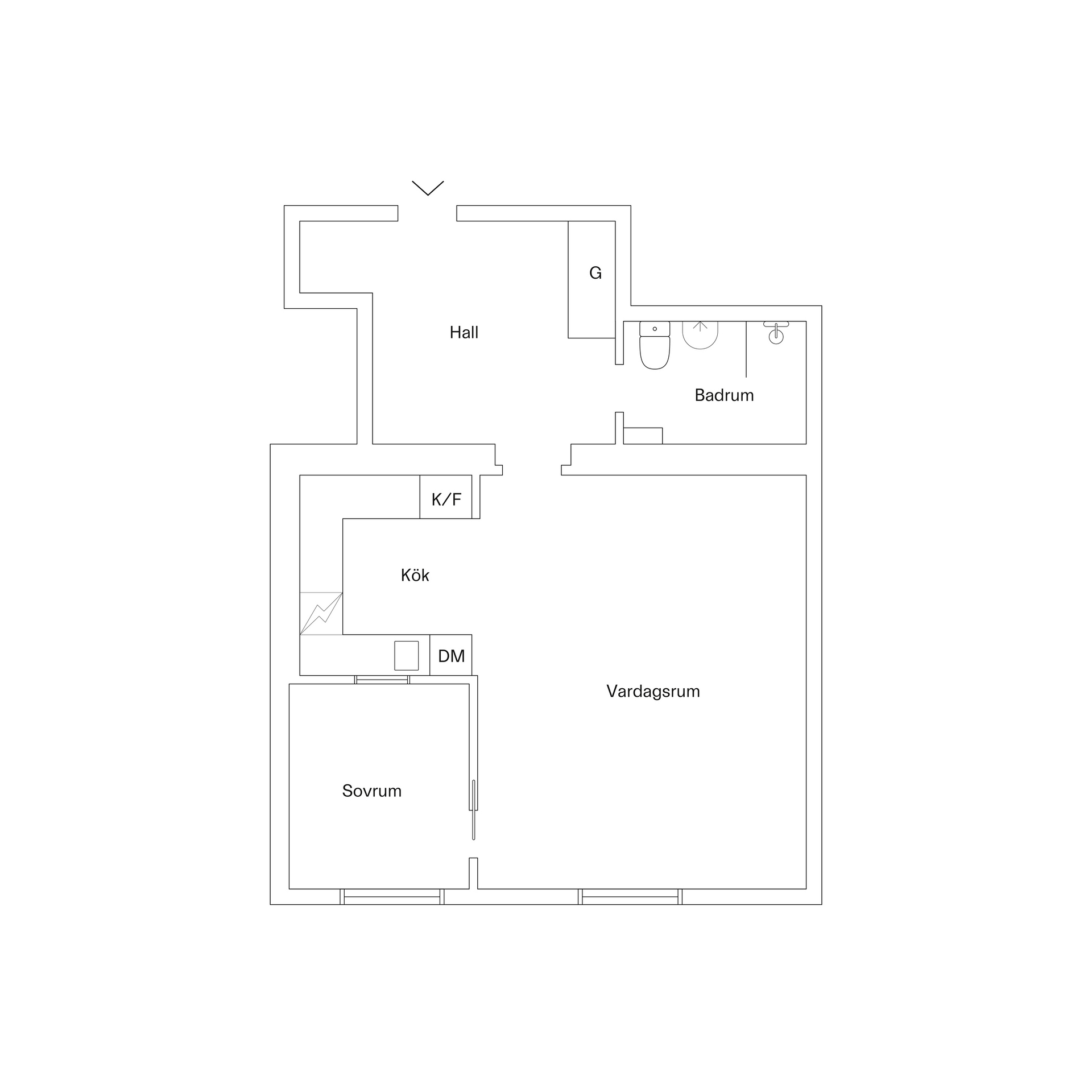 Väldisponerad 2:a med inglasad balkong.