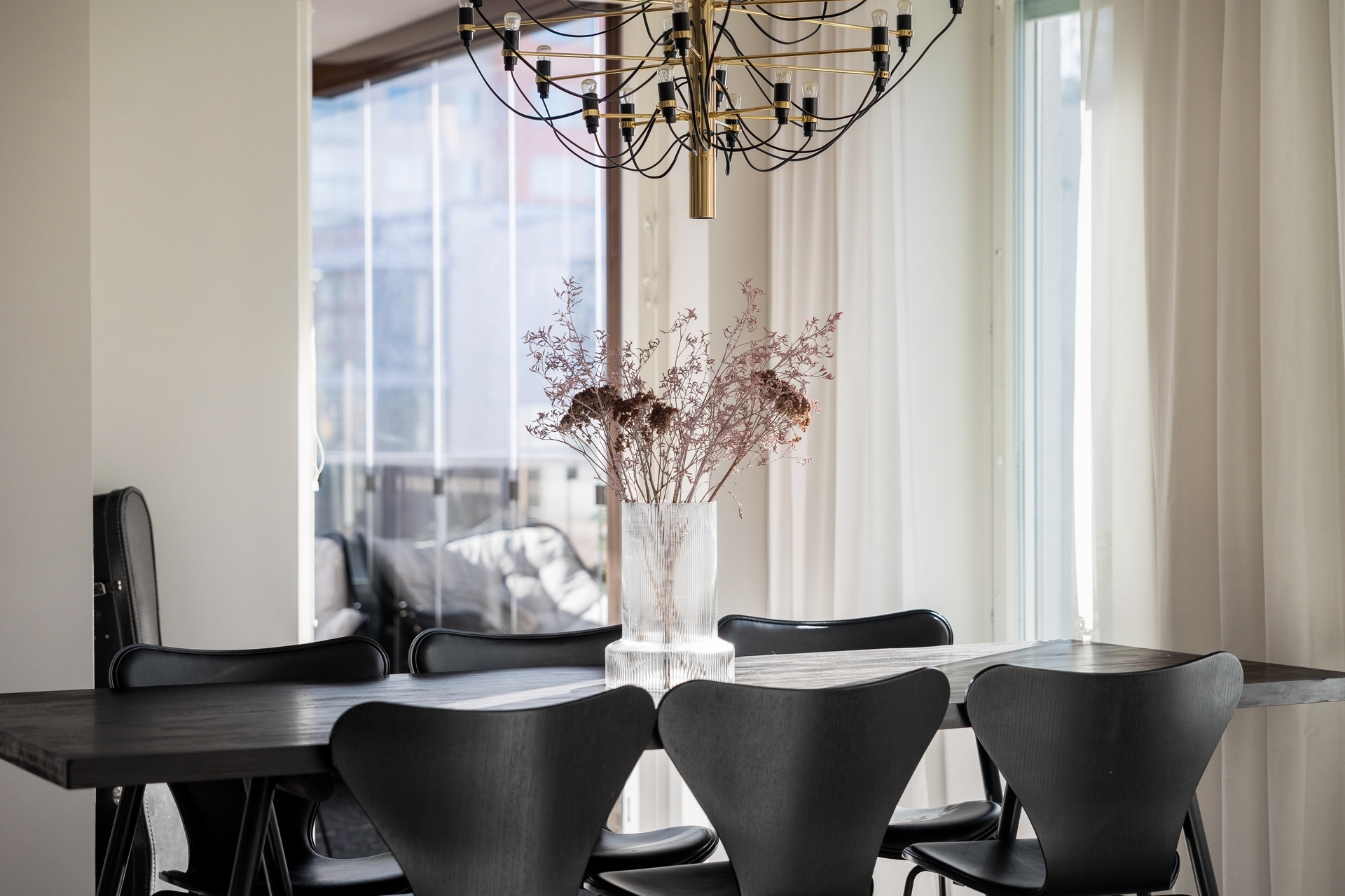 Välkommen till ett hem där utsikten över grönskan och stadens takåsar möter en omsorgsfullt utformad interiör och ett svårslaget läge. Här bor du i en genomgående smakfullt inredd bostad med generösa ytor, påkostade materialval och en stor inglasad balkong i soligt läge – perfekt för avkoppling i eftermiddags- och kvällssolen. Den sociala planlösningen bjuder in till umgänge, med ett exklusivt HTH-kök i öppen anslutning till vardagsrummet, flera fönsterpartier som släpper in rikligt med ljus och tre rogivande sovrum fördelade på ett sätt som passar både barnfamiljen, paret och den som jobbar hemifrån.