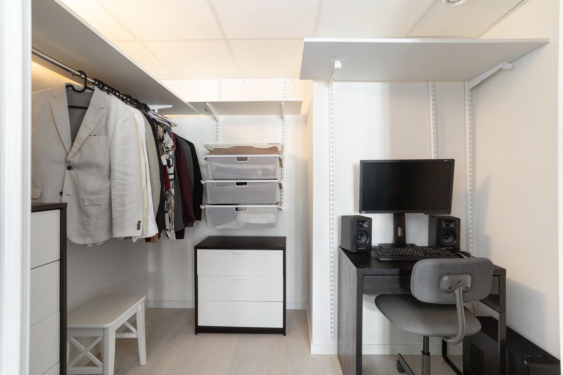 Högt upp i huset, walk-in-closet, mini-3:a och solig inglasad balkong i väst.