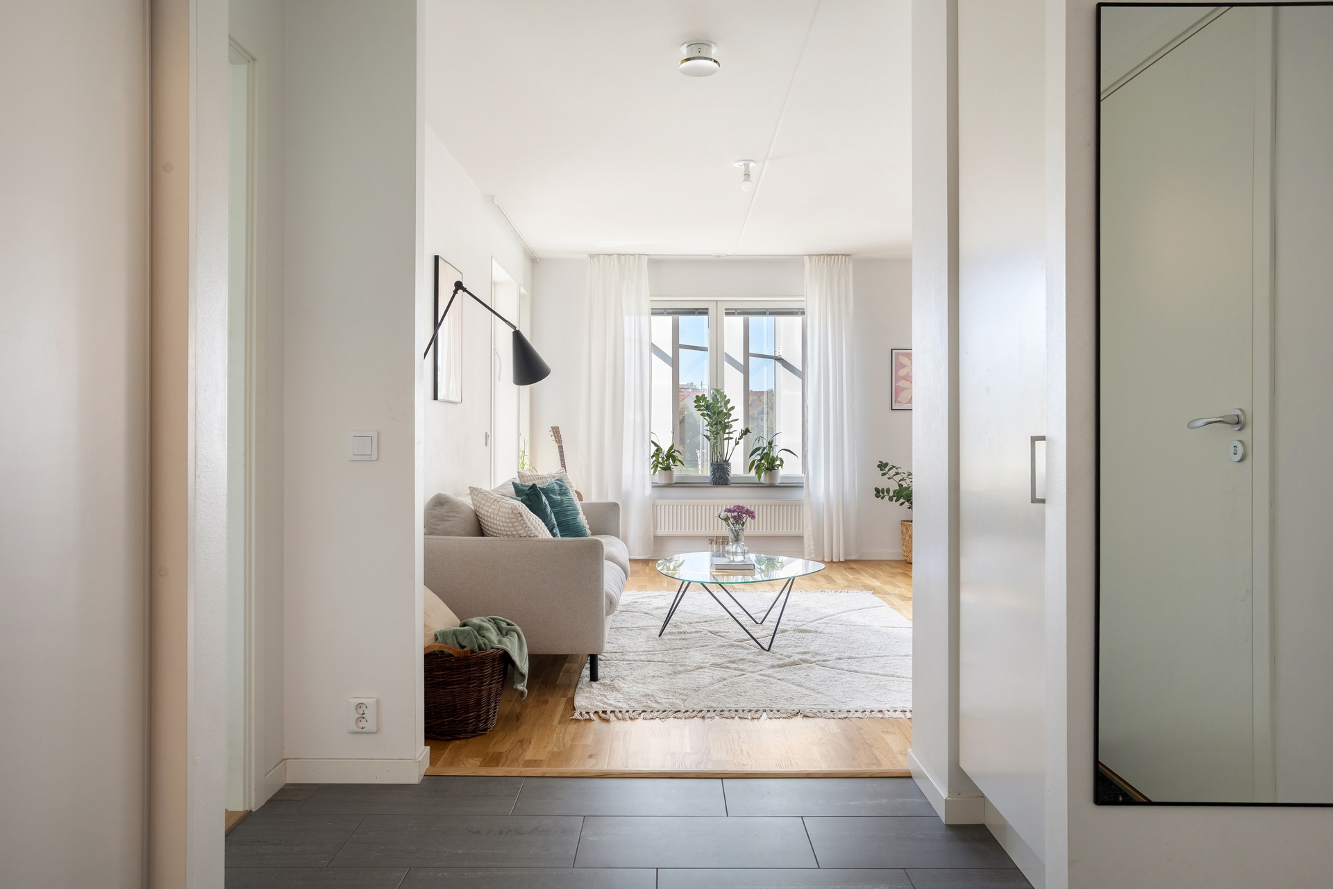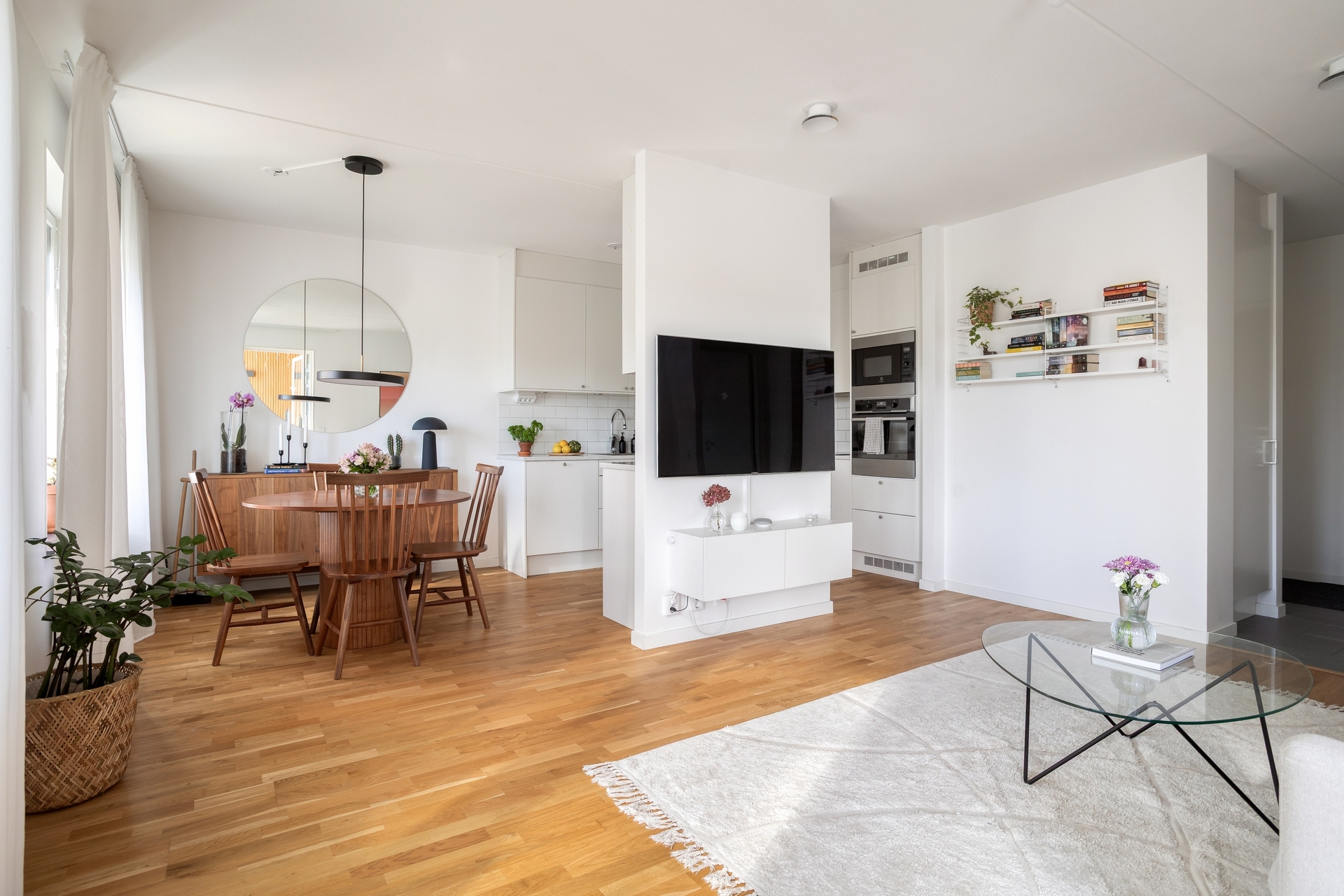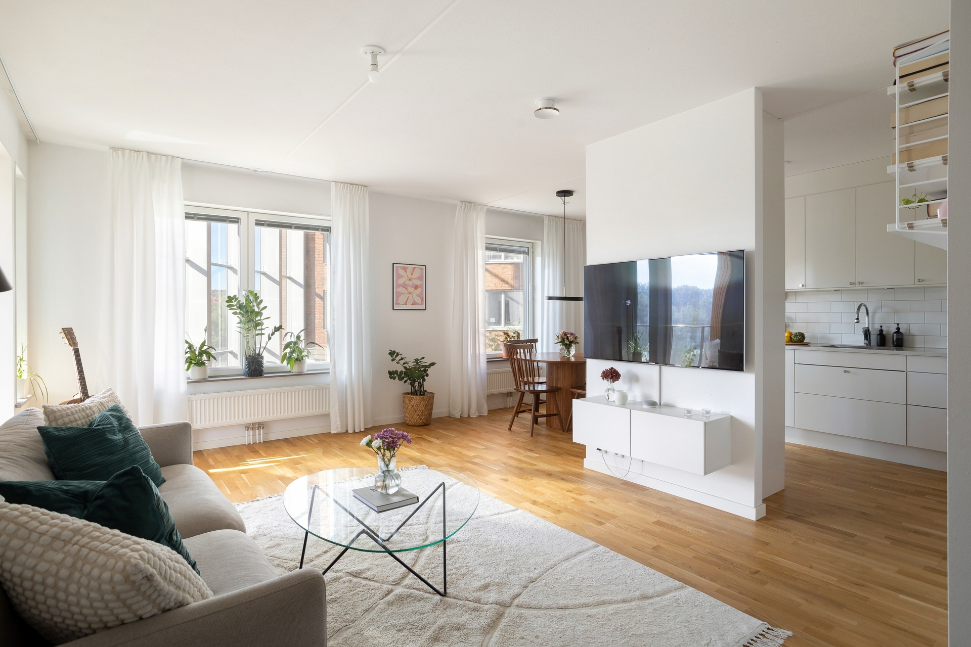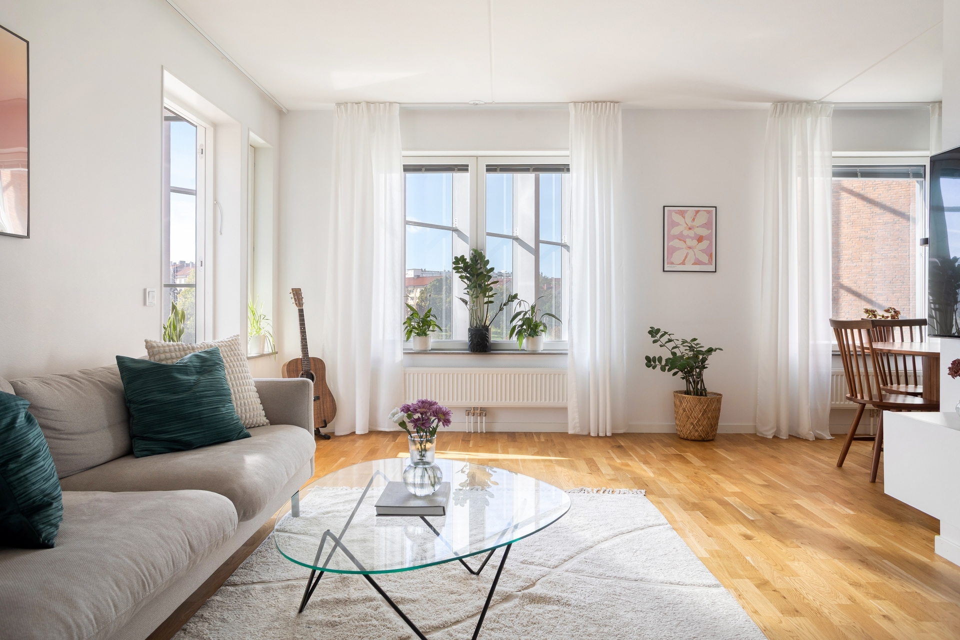 Ljus, modern och välplanerad tvåa – möjlig trea – vid Kristinebergs Slottspark.