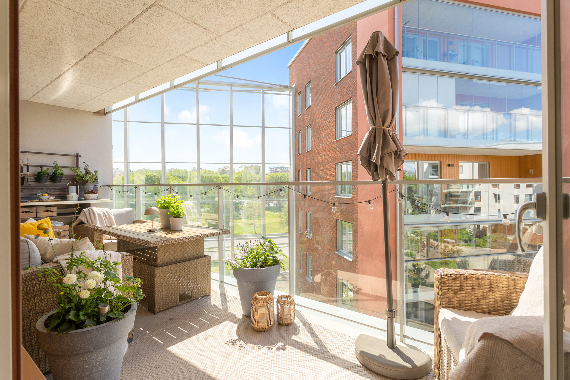 Exklusiv gavel 3:a med inglasad balkong i soligt läge.