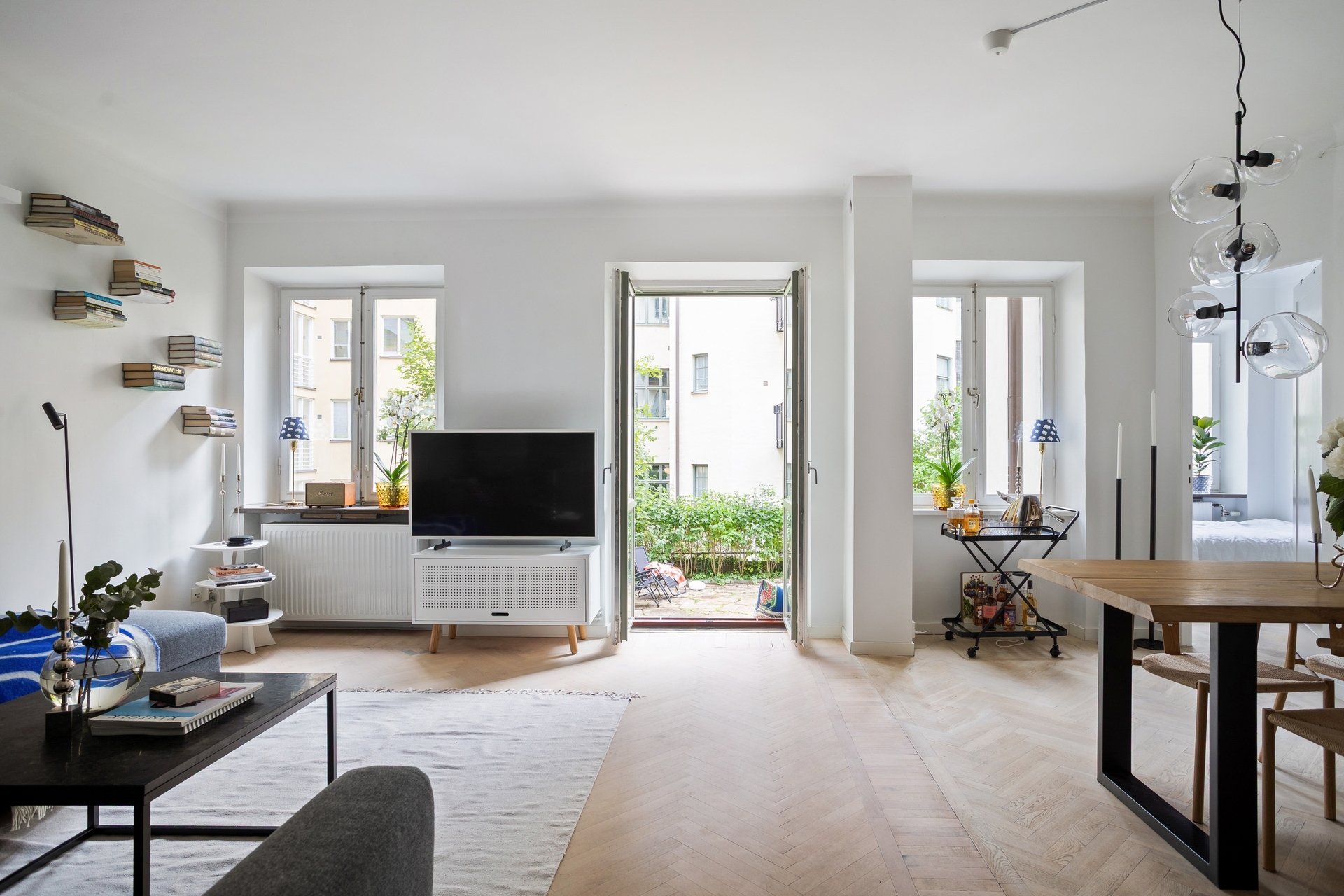 Välkommen till en ljusa och välplanerad bostad där innerstadens puls möter lugnet från Kungsholmens vackraste innergård. Här bor du med social planlösning, takhöjd om 2,7 m, två bra sovrum och där tidstypiska originaldetaljer möter nutida bekvämlighet. Det unika gårdsläget med egen utgång skapar en härlig känsla av radhus mitt i stan. De luftiga rummen bjuder på en naturlig balans mellan sociala ytor och privat avskildhet, med plats för både umgänge och rofyllda stunder. Vardagsrummet rymmer enkelt både soffgrupp och matplats, sovrummet är stort och harmoniskt, och bostaden erbjuder dessutom utmärkta förvaringsmöjligheter.