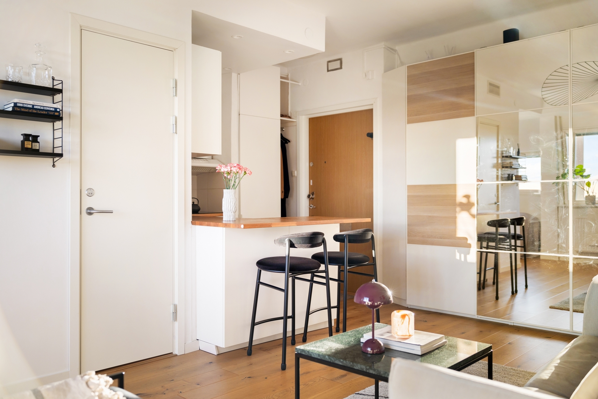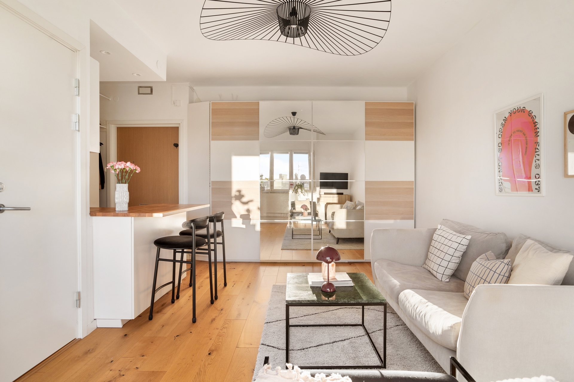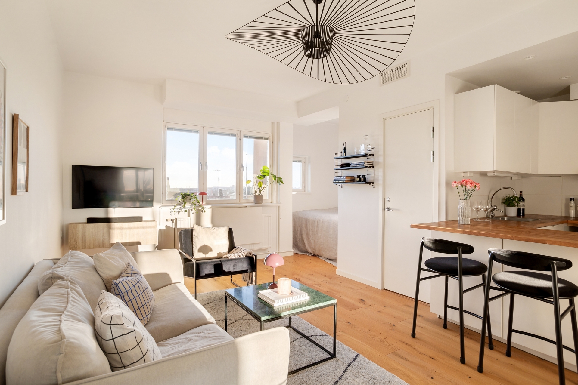 Välkommen till denna charmiga och välplanerade 1,5 i Brf Glasberget, högt belägen på nedre Kungsholmen vid Klara sjö. Här möts du av en ljus och inbjudande lägenhet med smarta ytor och moderna bekvämligheter. Köket är funktionellt utformat med goda arbetsytor och en stilren bänkskiva i massiv ek som även erbjuder plats för avslappnade måltider vid barstolarna. Det rymliga vardagsrummet bjuder på en fantastisk utsikt genom stora fönsterpartier i ett lugnt och insynsskyddat läge. Plats för soffrgupp, bokhylla och köksbord. Helt nytt badrum 2025 i samband med stambytet som nu är klart.