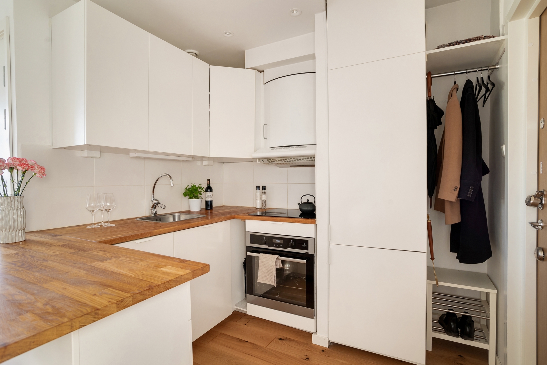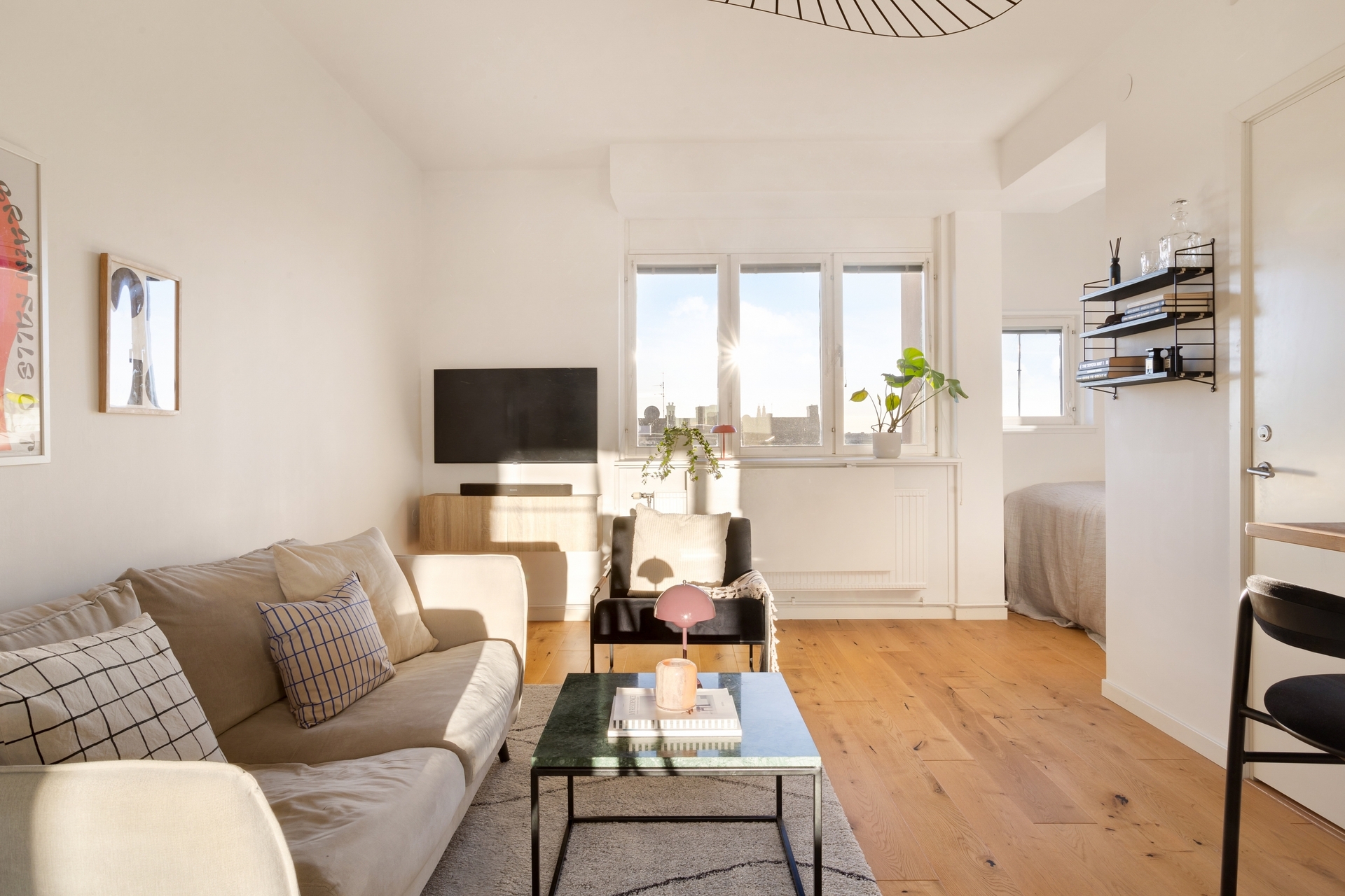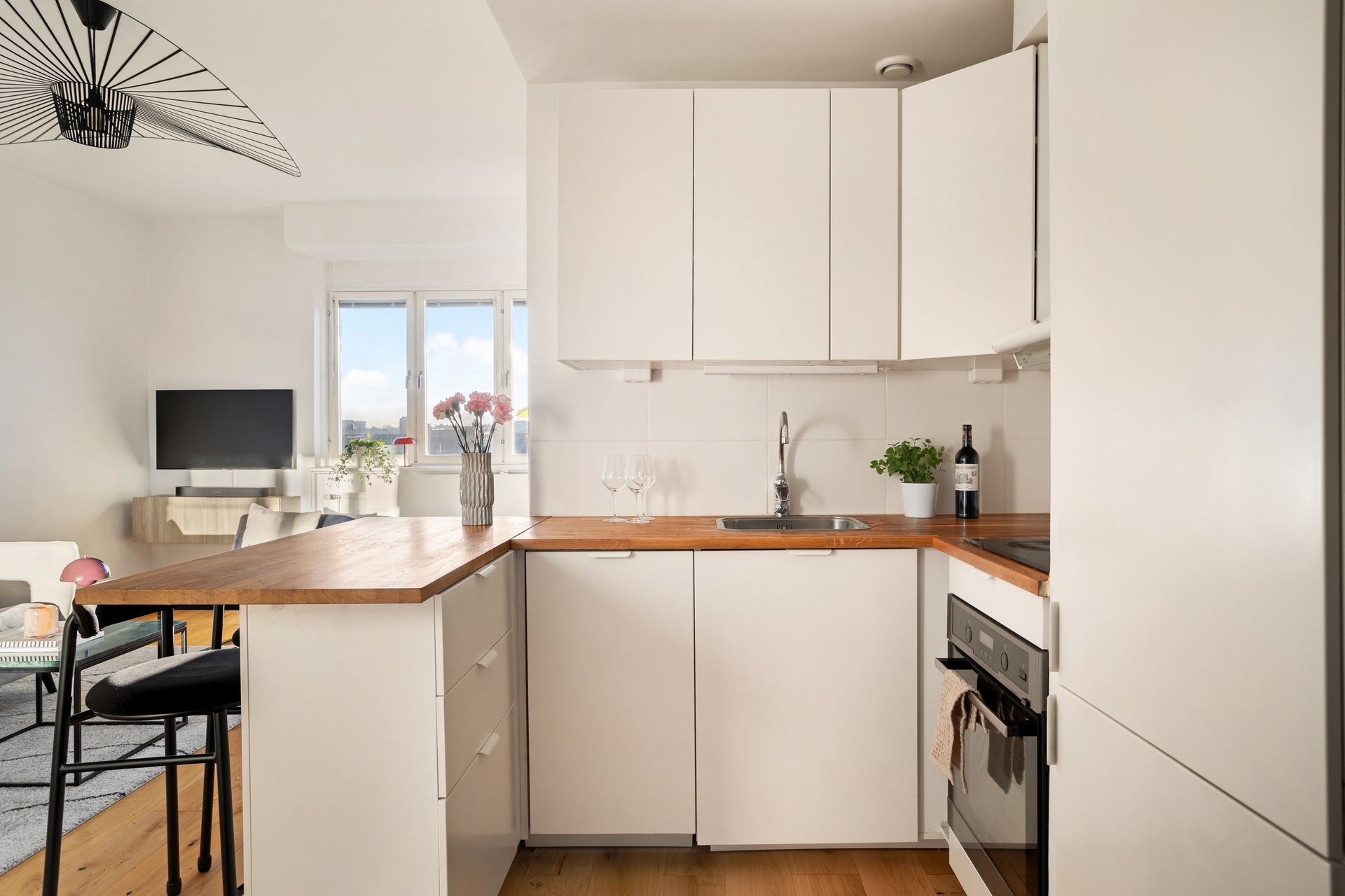 Välkommen till denna charmiga och välplanerade 1,5 i Brf Glasberget, högt belägen på nedre Kungsholmen vid Klara sjö. Här möts du av en ljus och inbjudande lägenhet med smarta ytor och moderna bekvämligheter. Köket är funktionellt utformat med goda arbetsytor och en stilren bänkskiva i massiv ek som även erbjuder plats för avslappnade måltider vid barstolarna. Det rymliga vardagsrummet bjuder på en fantastisk utsikt genom stora fönsterpartier i ett lugnt och insynsskyddat läge. Plats för soffrgupp, bokhylla och köksbord. Helt nytt badrum 2025 i samband med stambytet som nu är klart.