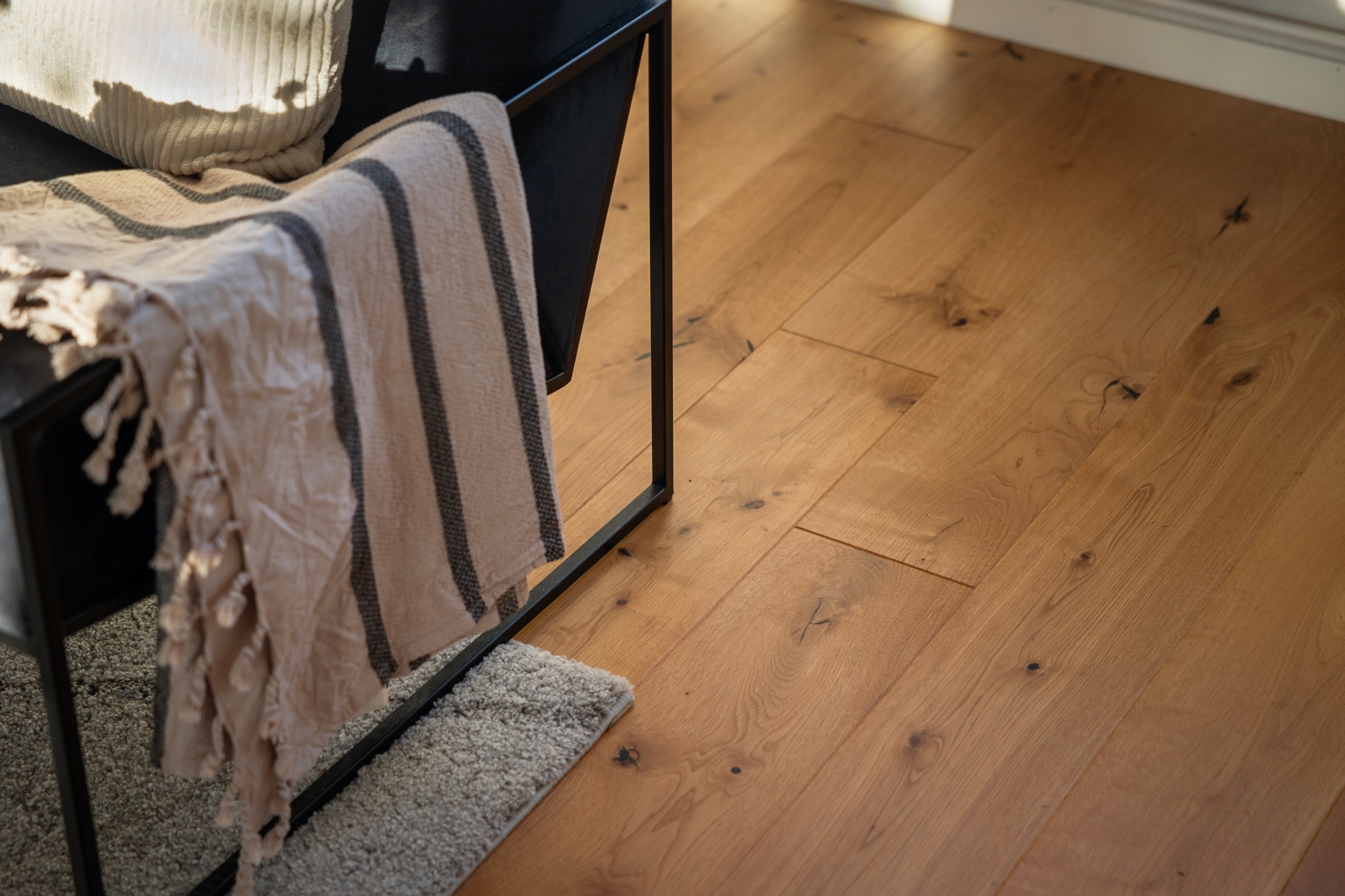 Välkomnande hall som bjuder in till ett första positivt intryck. Här finns avhängningsmöjligheter på inbyggd klädhängare och de vitmålade väggarna skapar en ljus och luftig känsla, medan det vackra ekparkettgolvet tillför värme och elegans. Golvet löper vidare genom hela bostaden och knyter samman rummens stilrena karaktär.