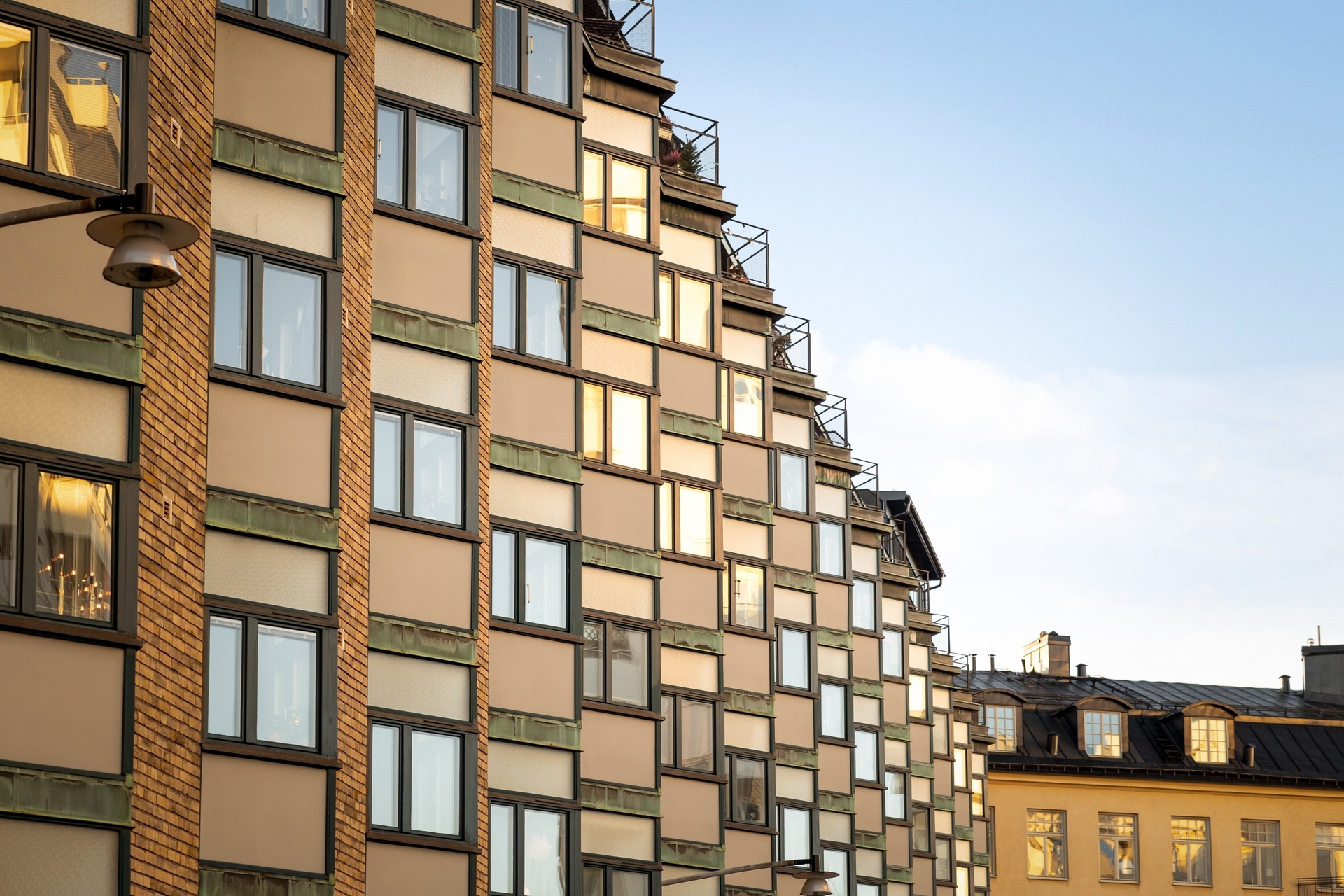 Bostäderna värms upp via fjärrvärme till vattenburna radiatorer.