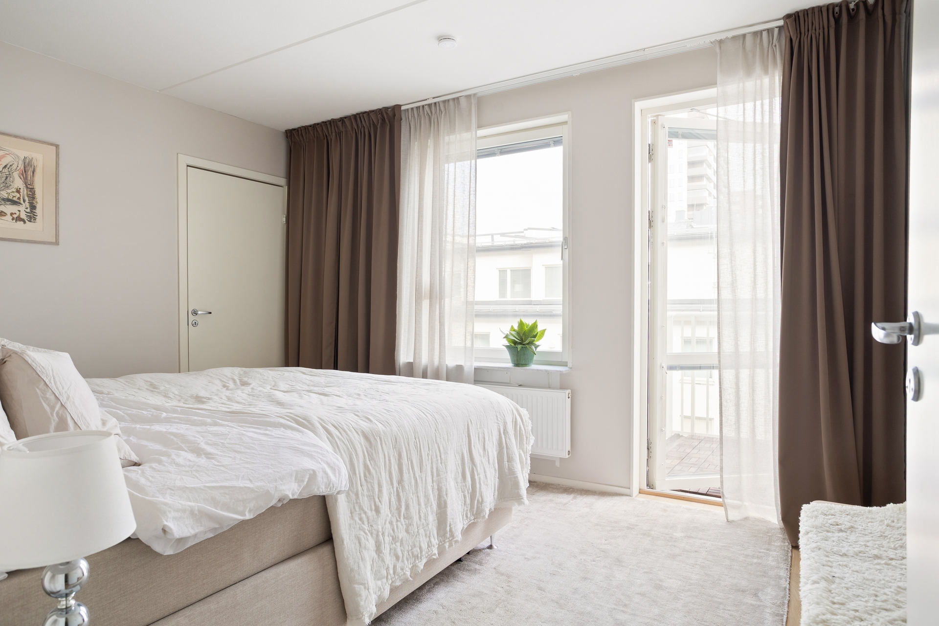 Högst upp, snygg interiör, stor sovalkov & snabbt tillträde möjligt.