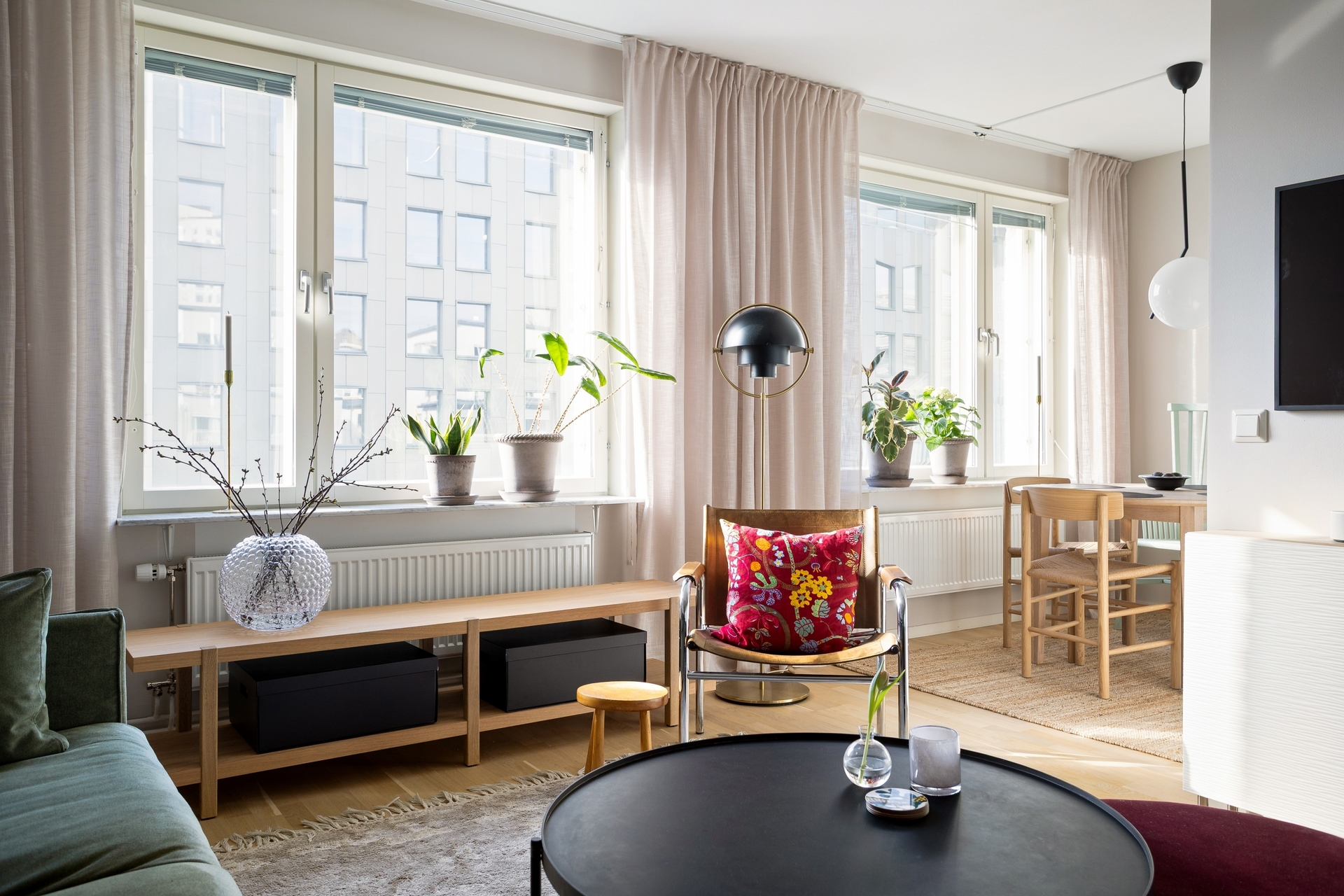 Genomtänkt hem med balkong och yteffektiva lösningar