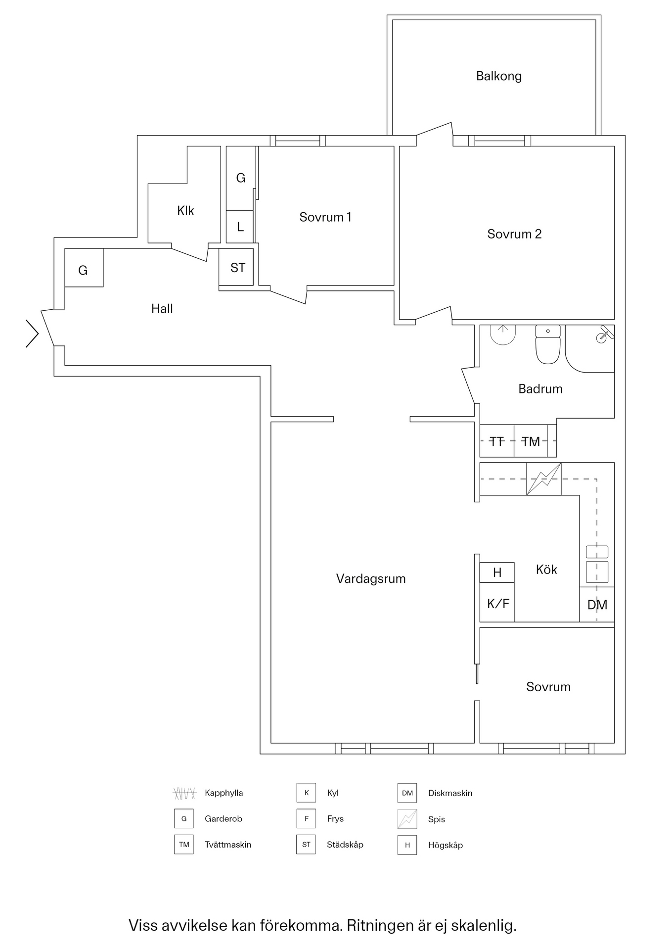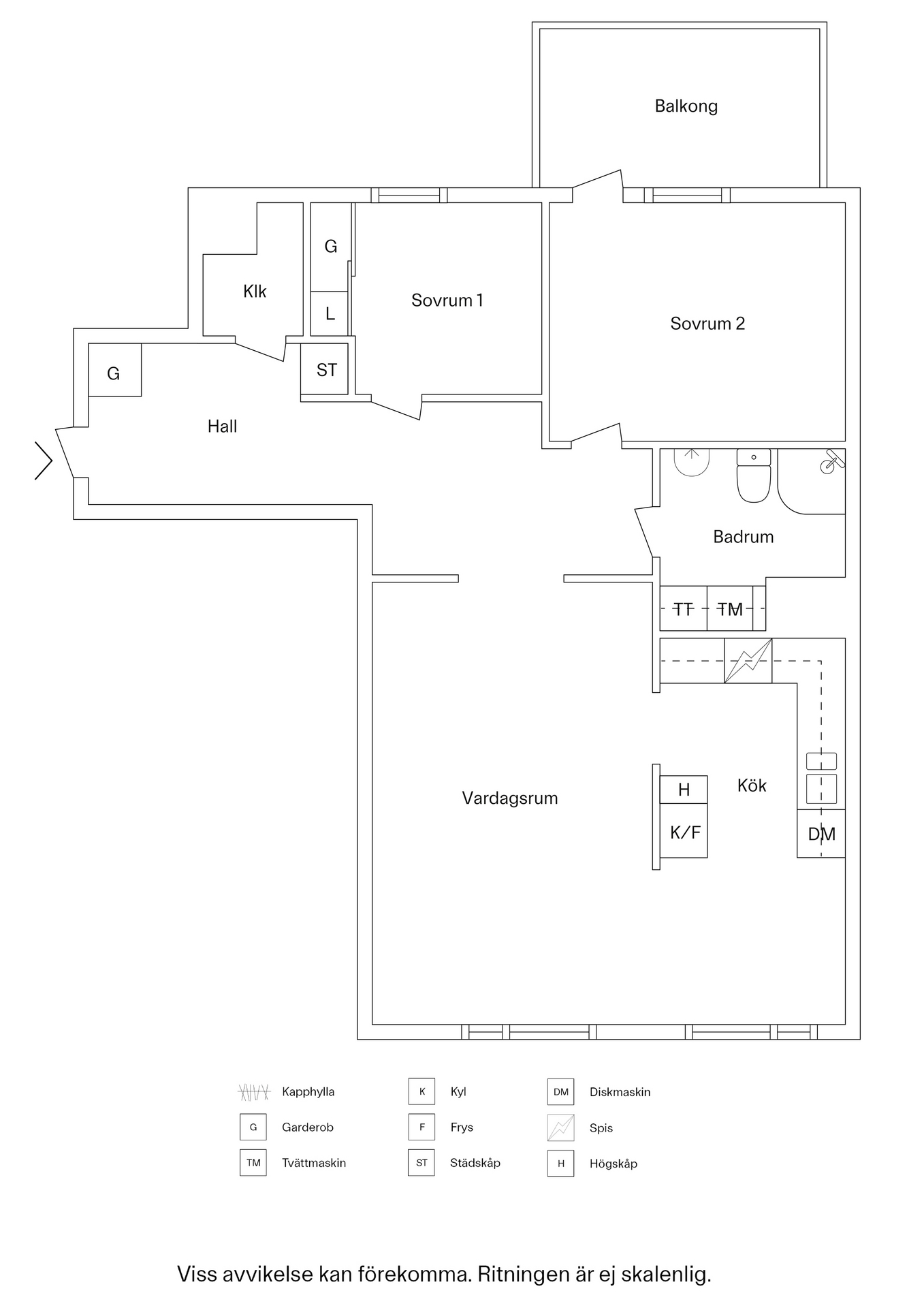 Väldisponerad 2:a med inglasad balkong.