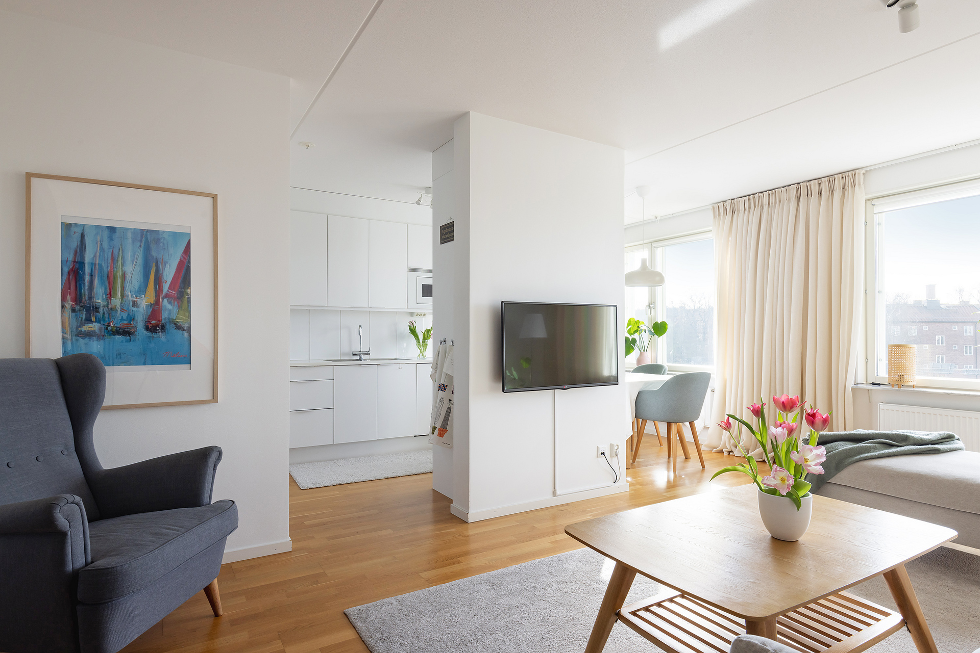 Tilltalande interiör, optimal planlösning och högt läge.
