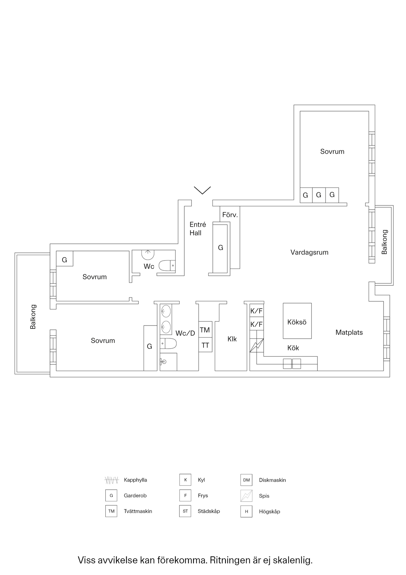 Välplanerad gavel-3:a med stor inglasad balkong och eftermiddagssol på vån 12.