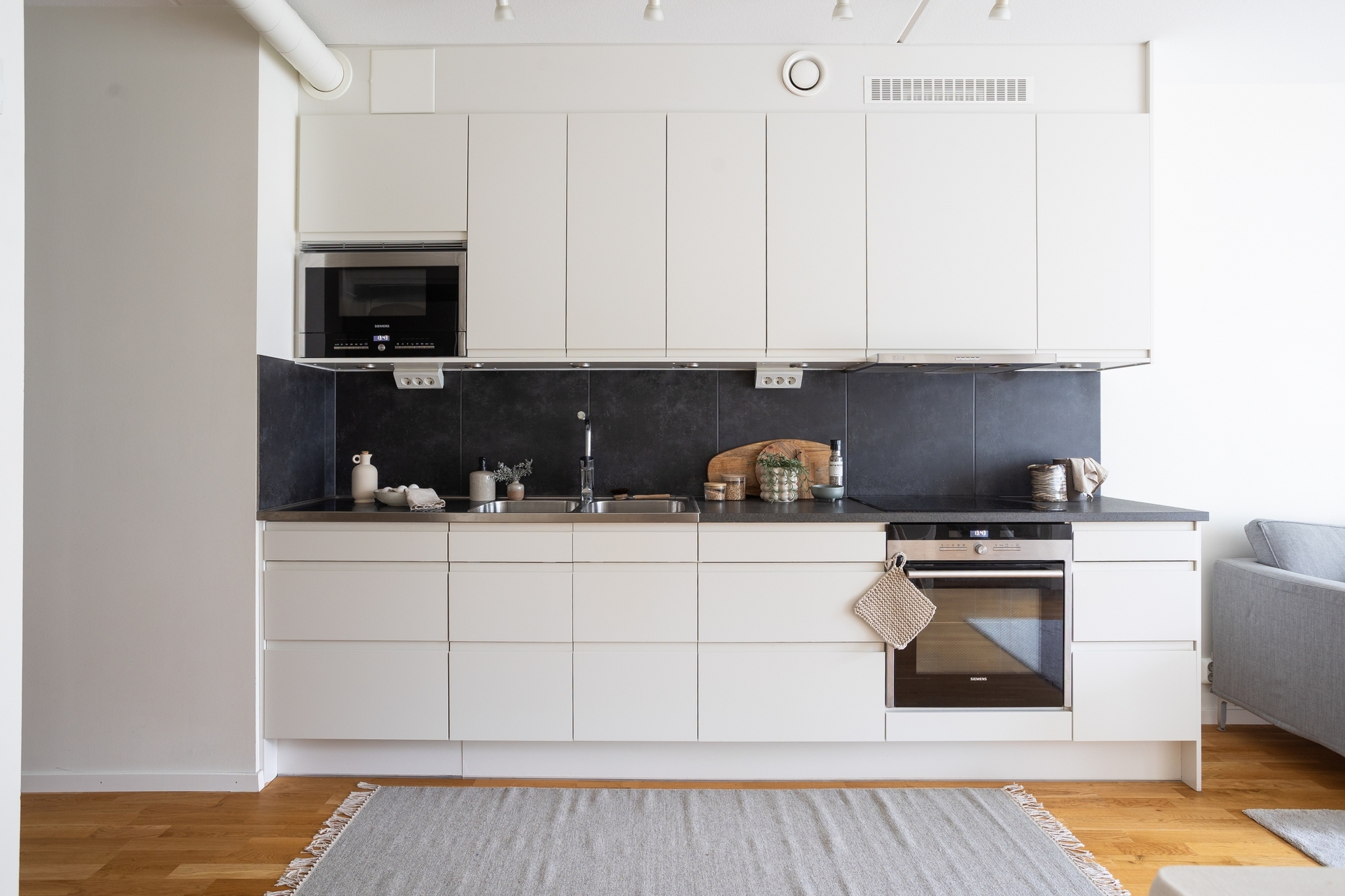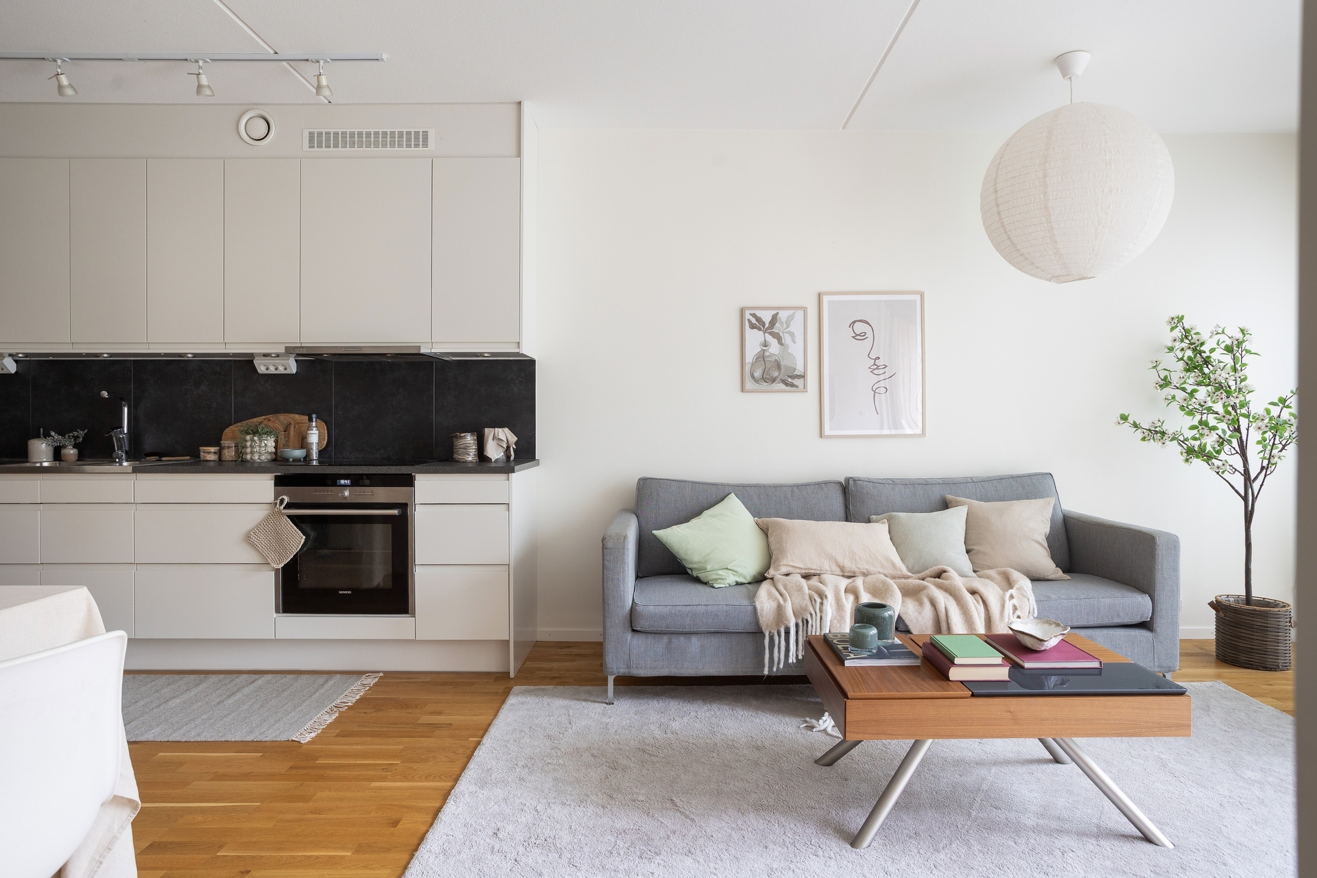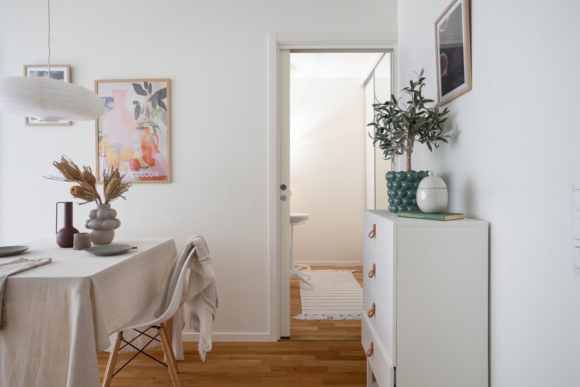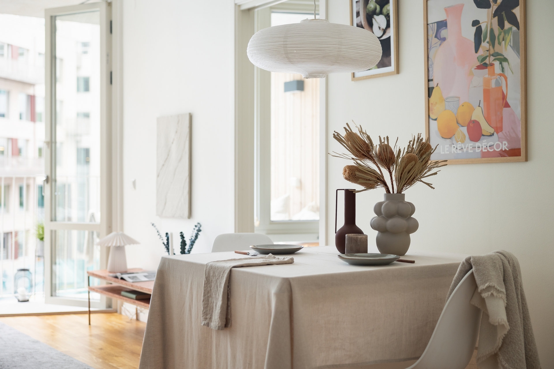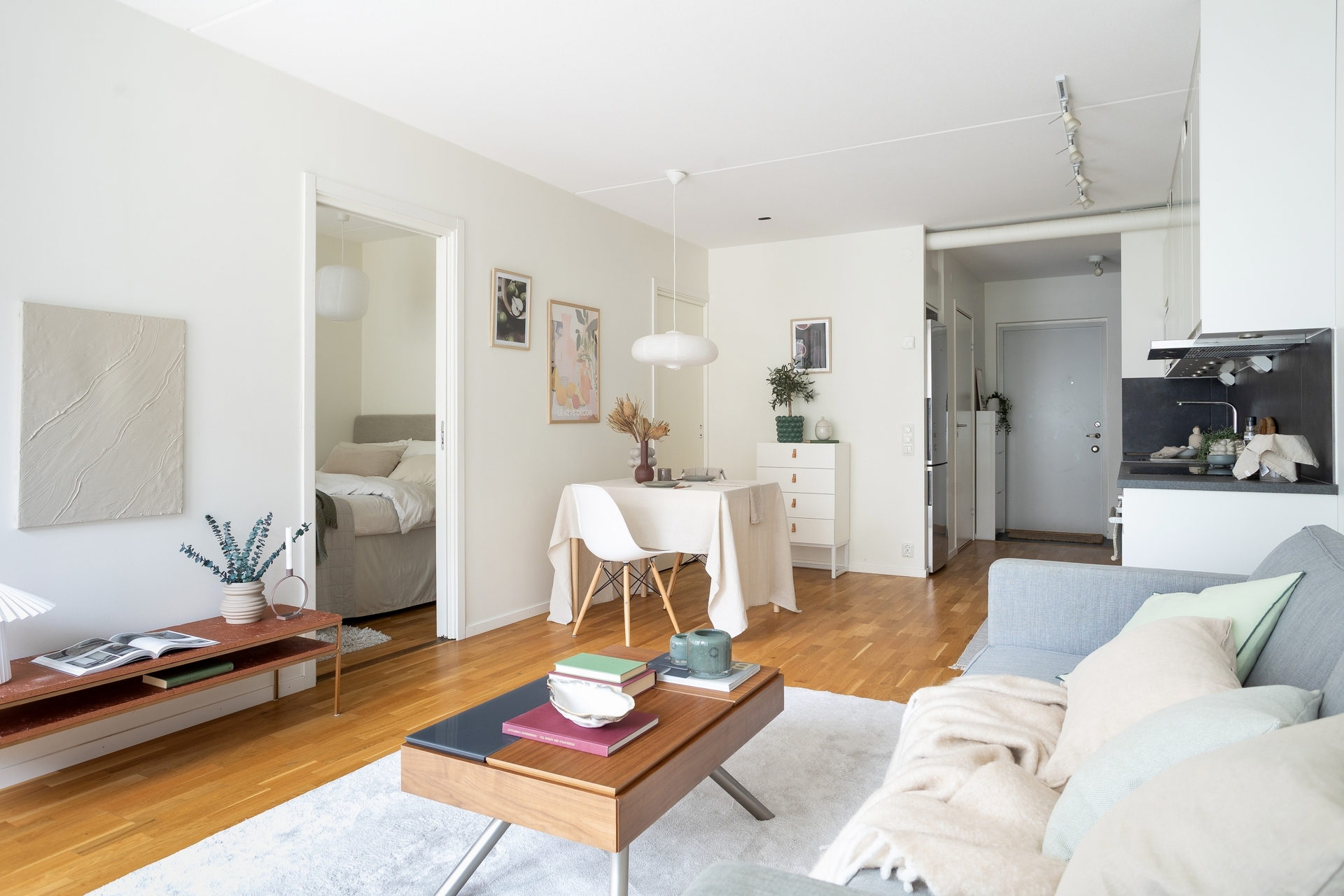 Högt läge, solig inglasad balkong och stilfullt renoverat kök – ett hem att trivas i!