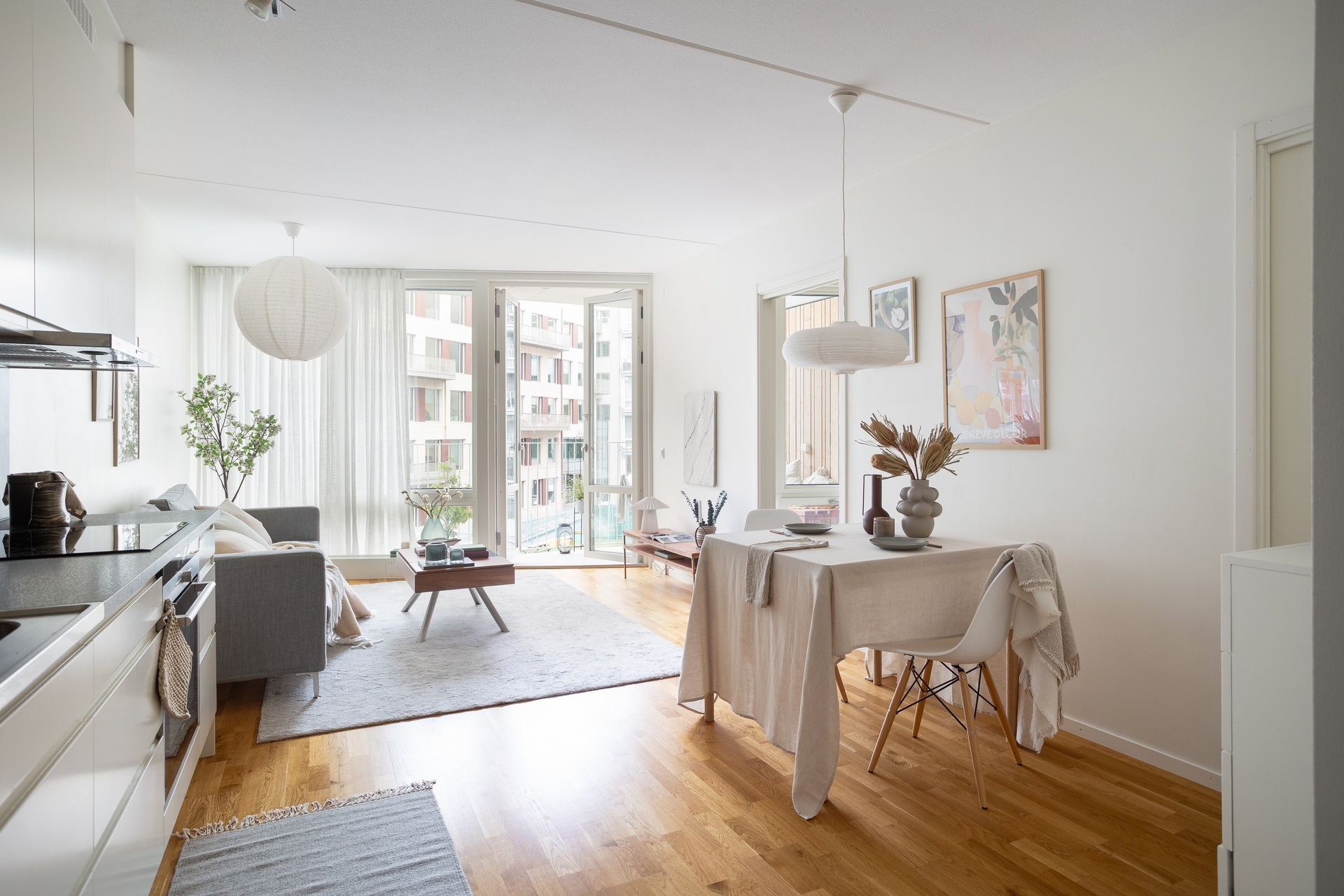Ljus 3:a (möjlig 4:a) med vackra trägolv, öppen planlösning och en solig balkong.