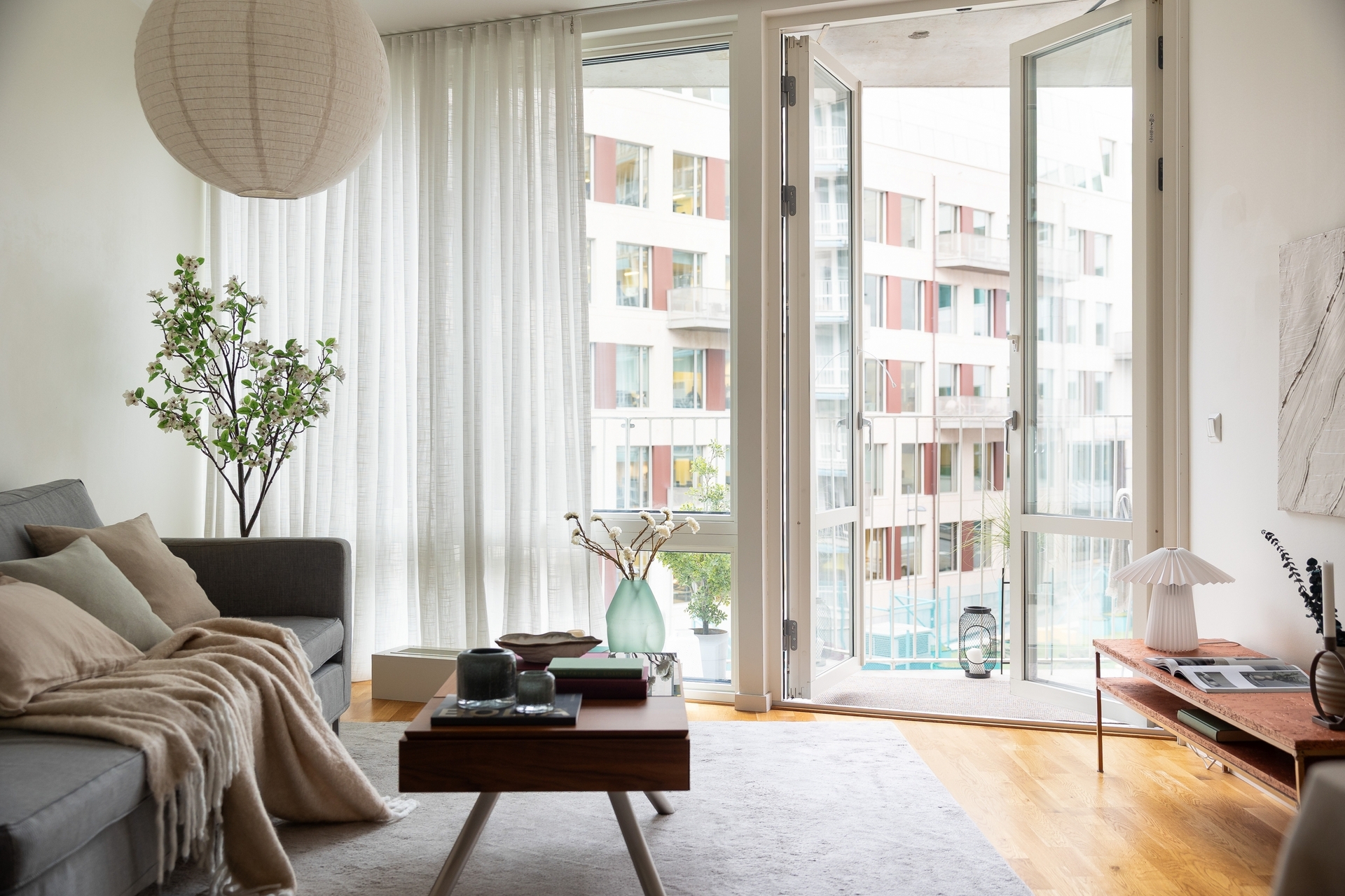 Dubbla balkonger - Mälarglimt - 4 sovrum - harmoniskt läge mot vacker innergård.