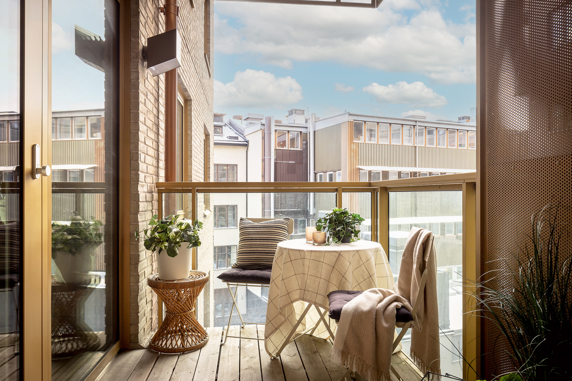 Härlig balkong som erbjuder plats för bord, stolar och din egen lilla odling.