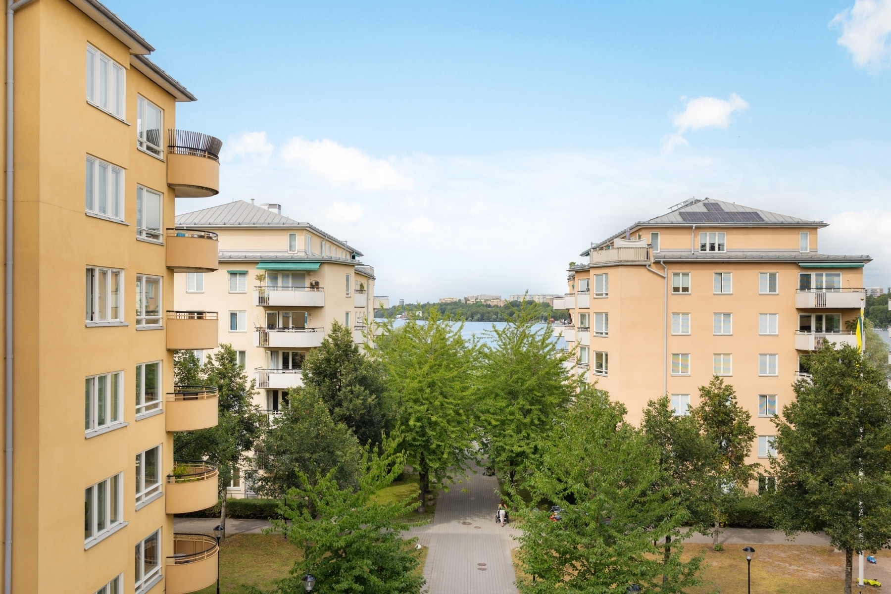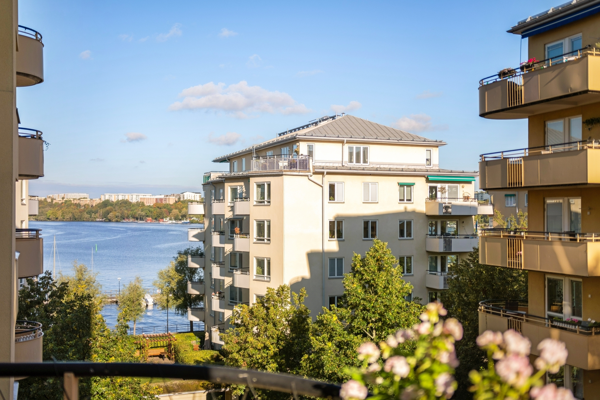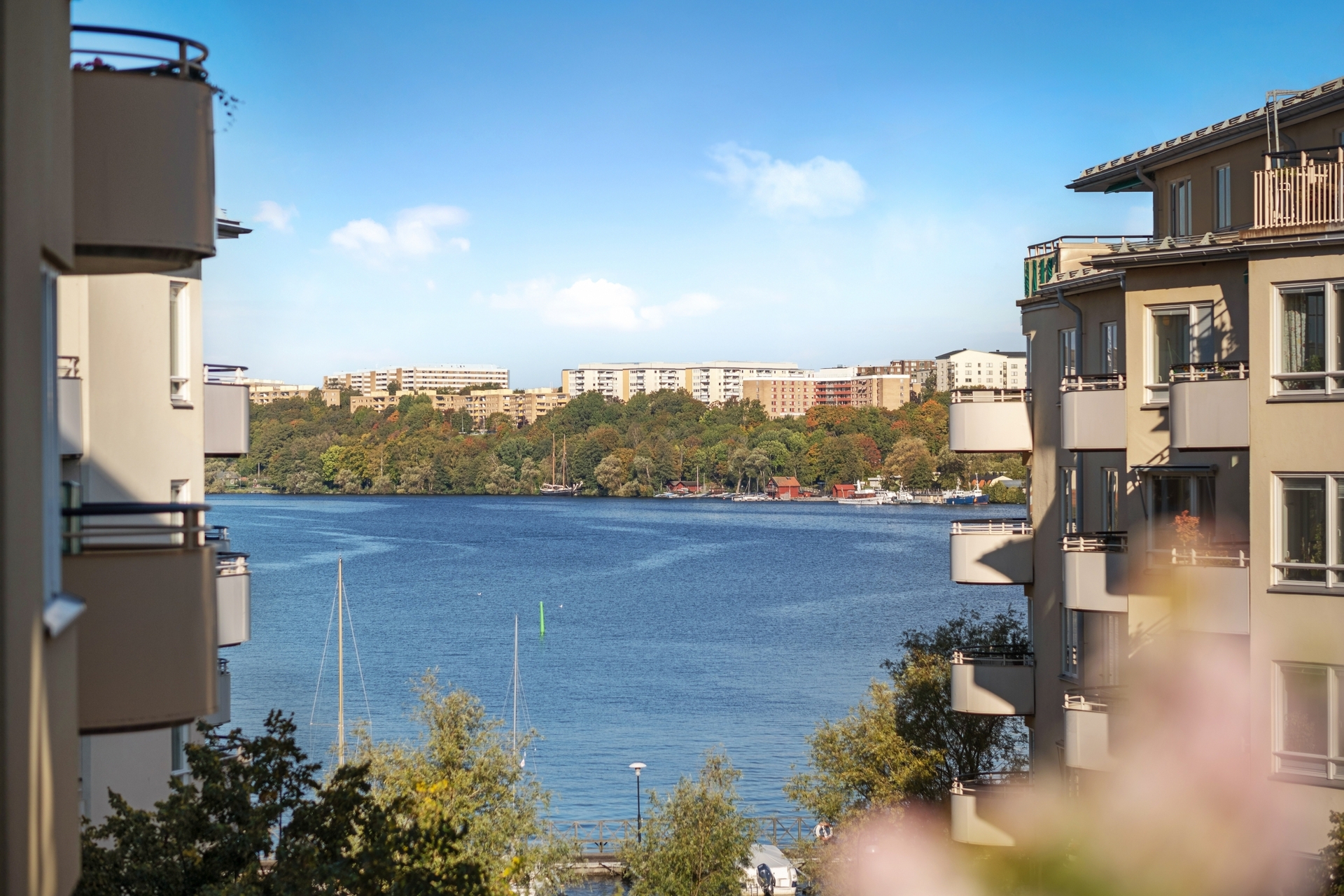 Från vardagsrummet nås den rymliga balkongen med utsikt mot vattnet – en perfekt plats för avkoppling. Här finns gott om utrymme för både sittgrupp och växter. Njut av morgonkaffet i förmiddagssolen eller luta dig tillbaka med en bok i en grön och rogivande miljö.