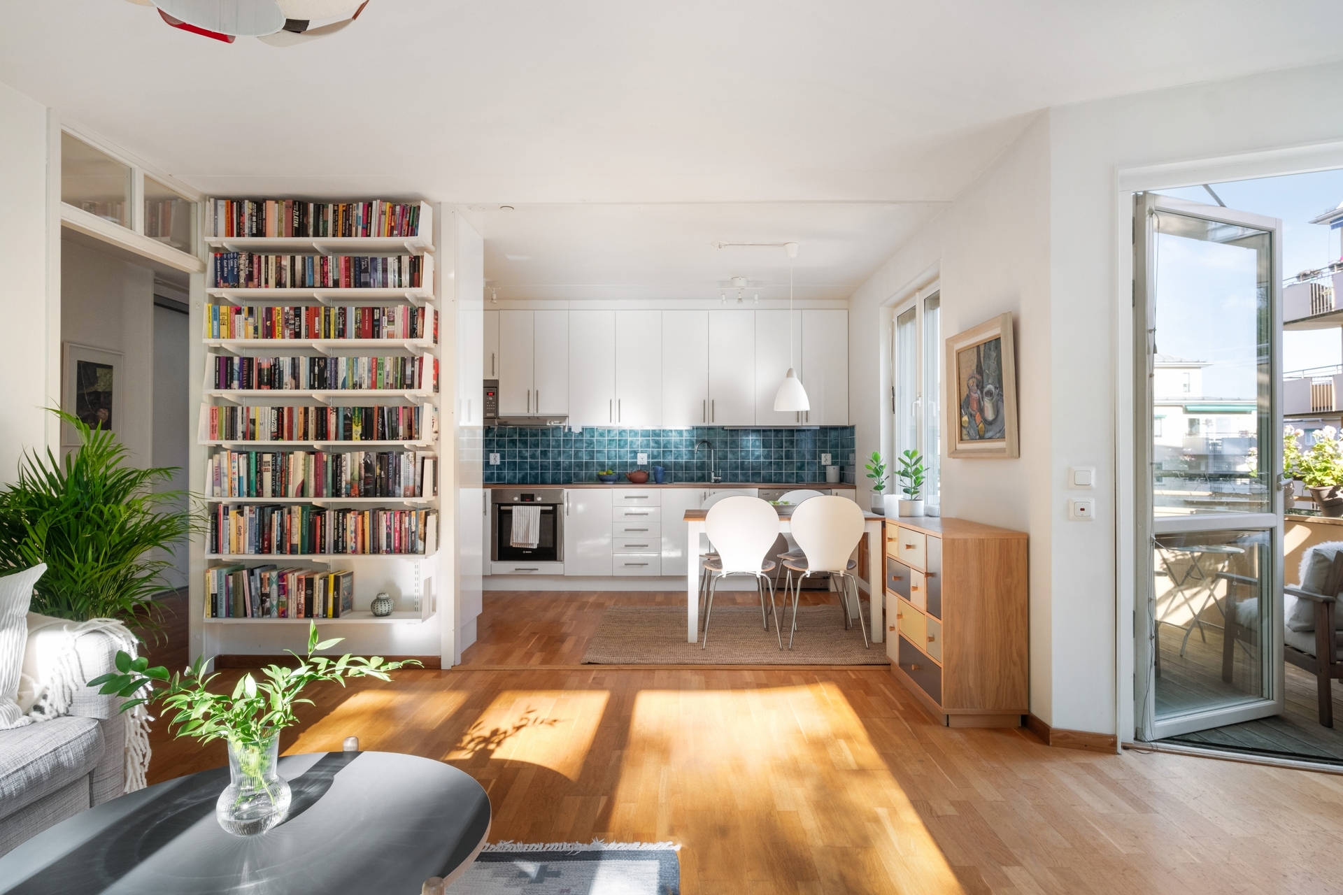 Här bor du bekvämt med närhet till tunnelbanans gröna linje, ICA Maxi, service och restauranger – samtidigt som föreningen erbjuder bilpool, garage och flera dolda tillgångar i form av hyresrätter som stärker ekonomin. Ett modernt och ombonat boende för dig som söker ett hem med både lugn, ljus och närhet till allt.