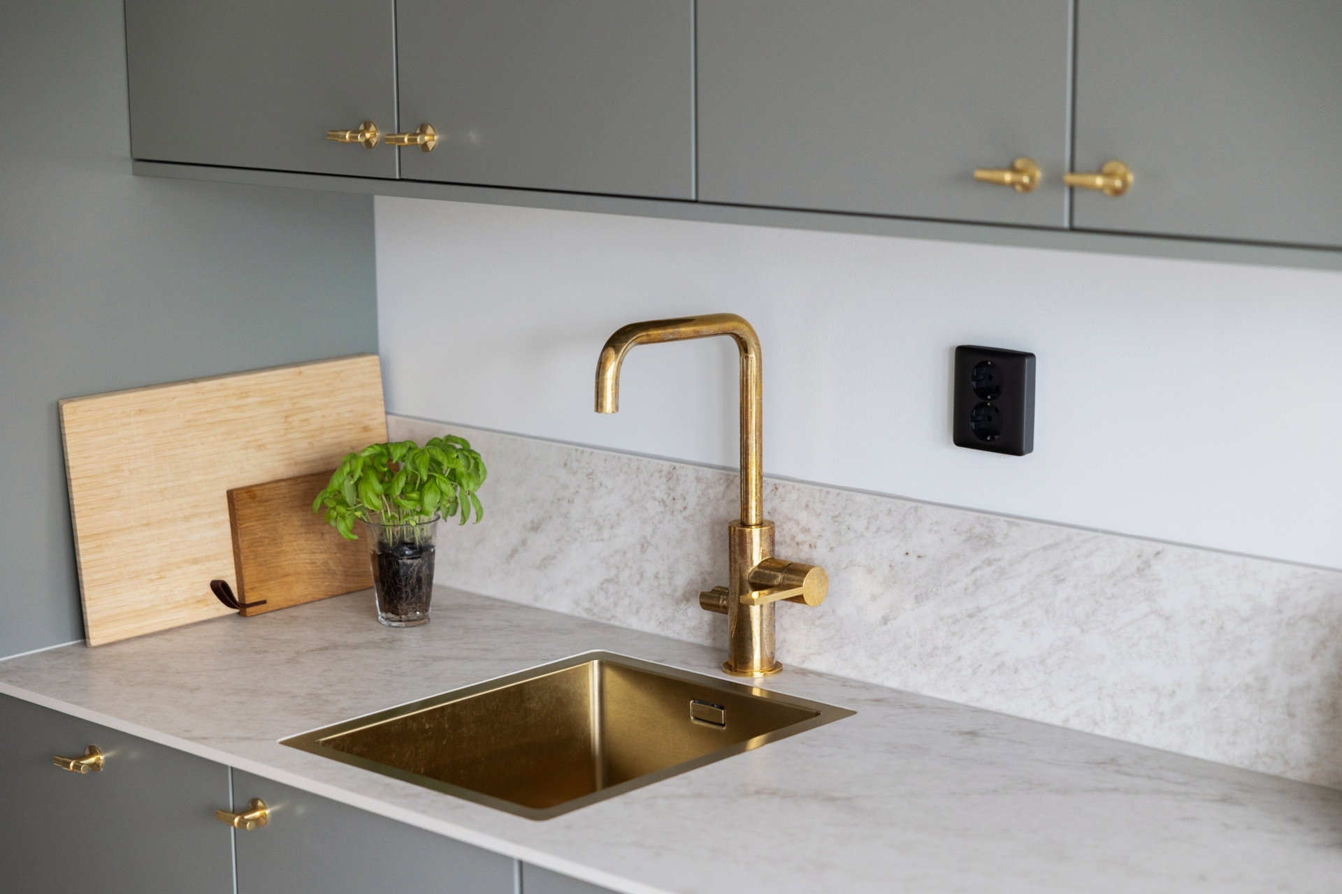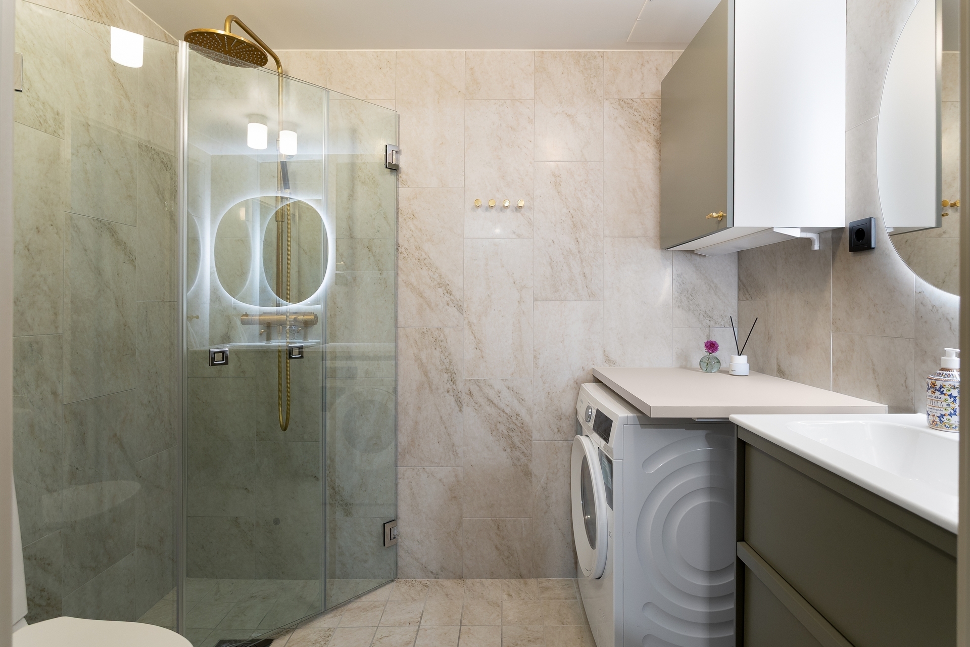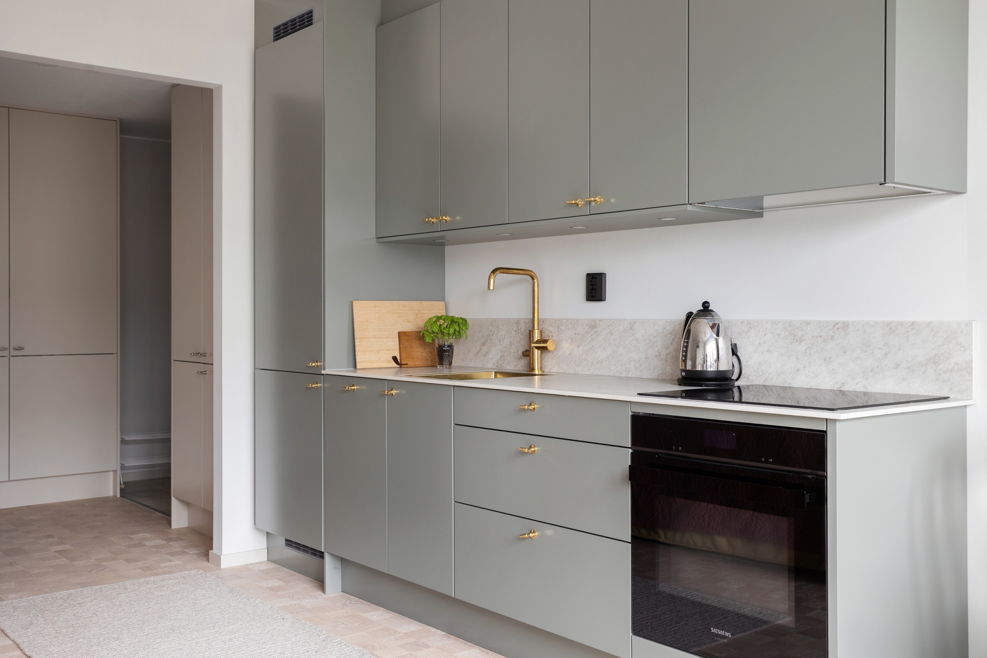 Högt läge, solig inglasad balkong och stilfullt renoverat kök – ett hem att trivas i!