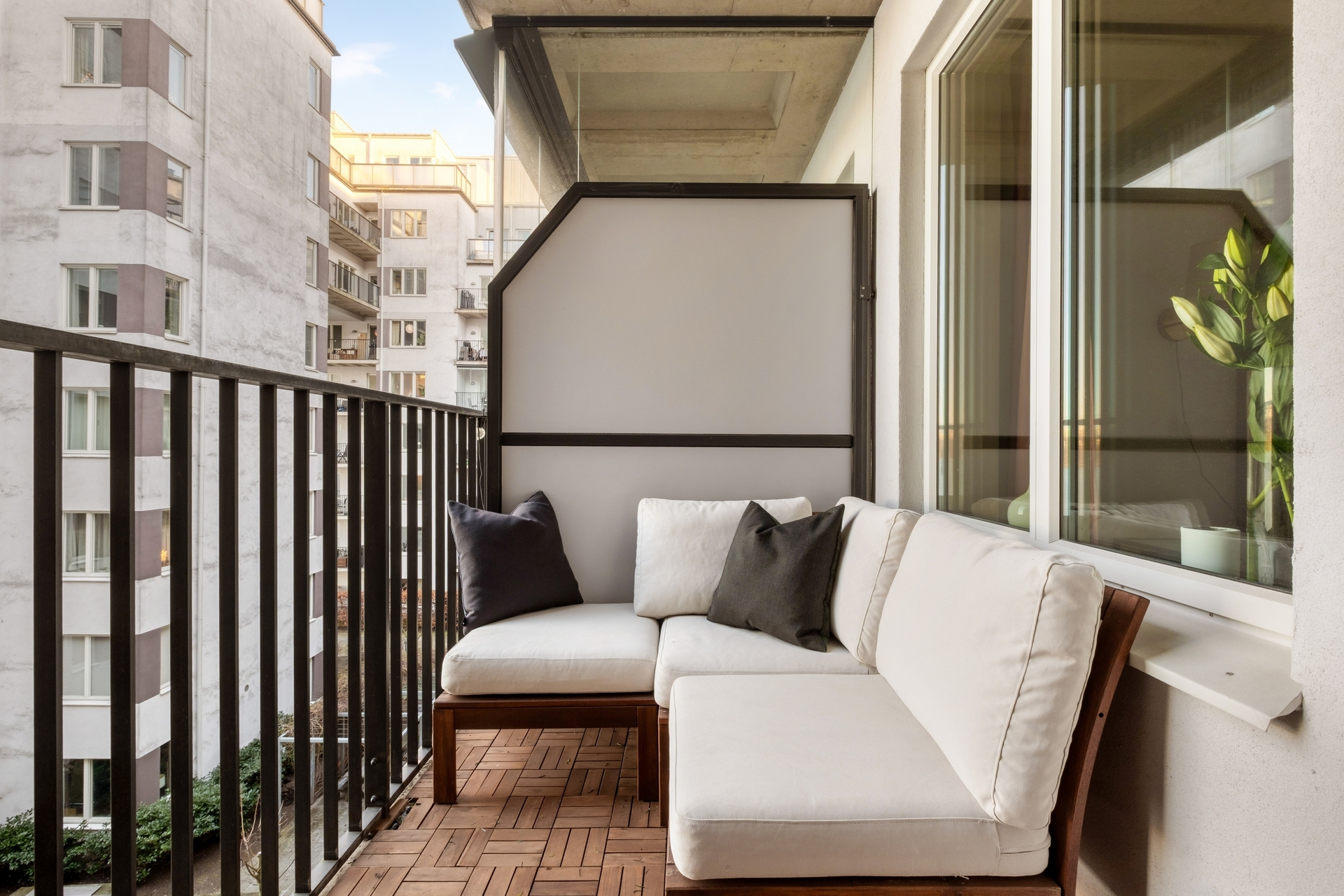 Stor balkong mot gård i söder, köksö, härlig vy & ingen insyn.