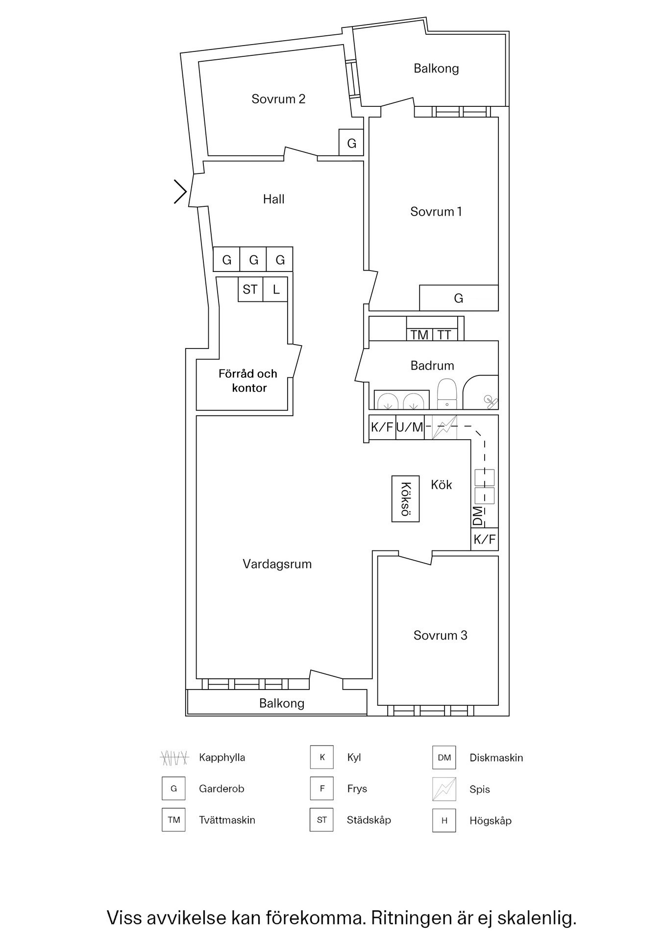 Smakfull 3:a med möjlighet till 4 rum - komplett med balkong mot lugn innergård!