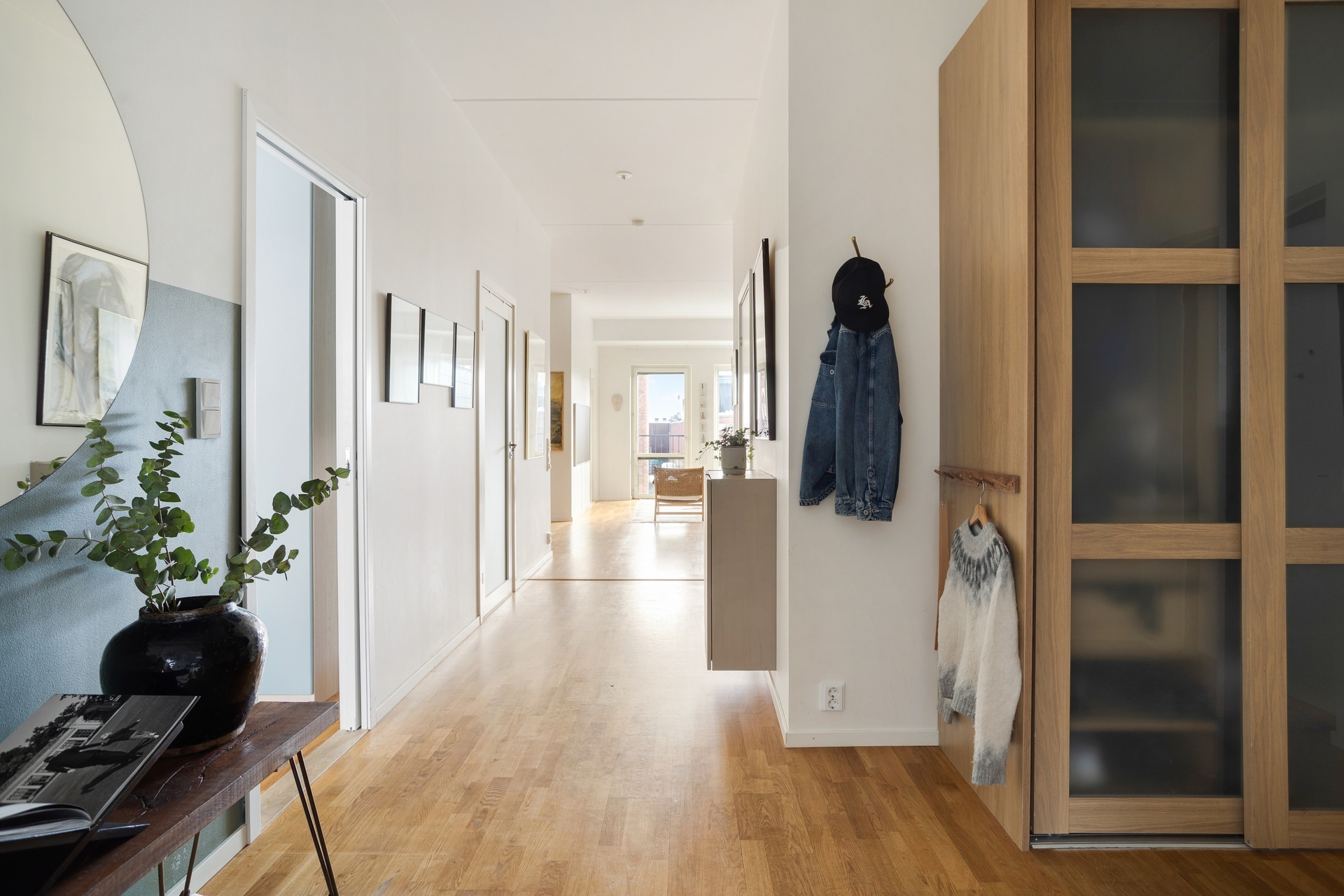 Högt upp i huset, walk-in-closet och solig inglasad balkong i väst.