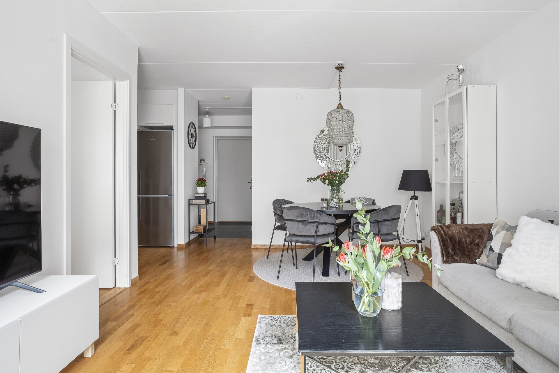 Trivsamt och socialt vardagsrum som bjuder på en halvöppen planlösning mot köket och ett generöst fönsterparti som låter dagsljuset flöda in. Här finns även en praktisk vädringsbalkong som erbjuder möjlighet till frisk luft och enkel vädring. Rummet är lättmöblerat och erbjuder gott om utrymme för såväl en större soffgrupp och tv-möbel som ett matbord. En perfekt plats för både avkopplande hemmakvällar och härliga sammankomster med vänner och familj.