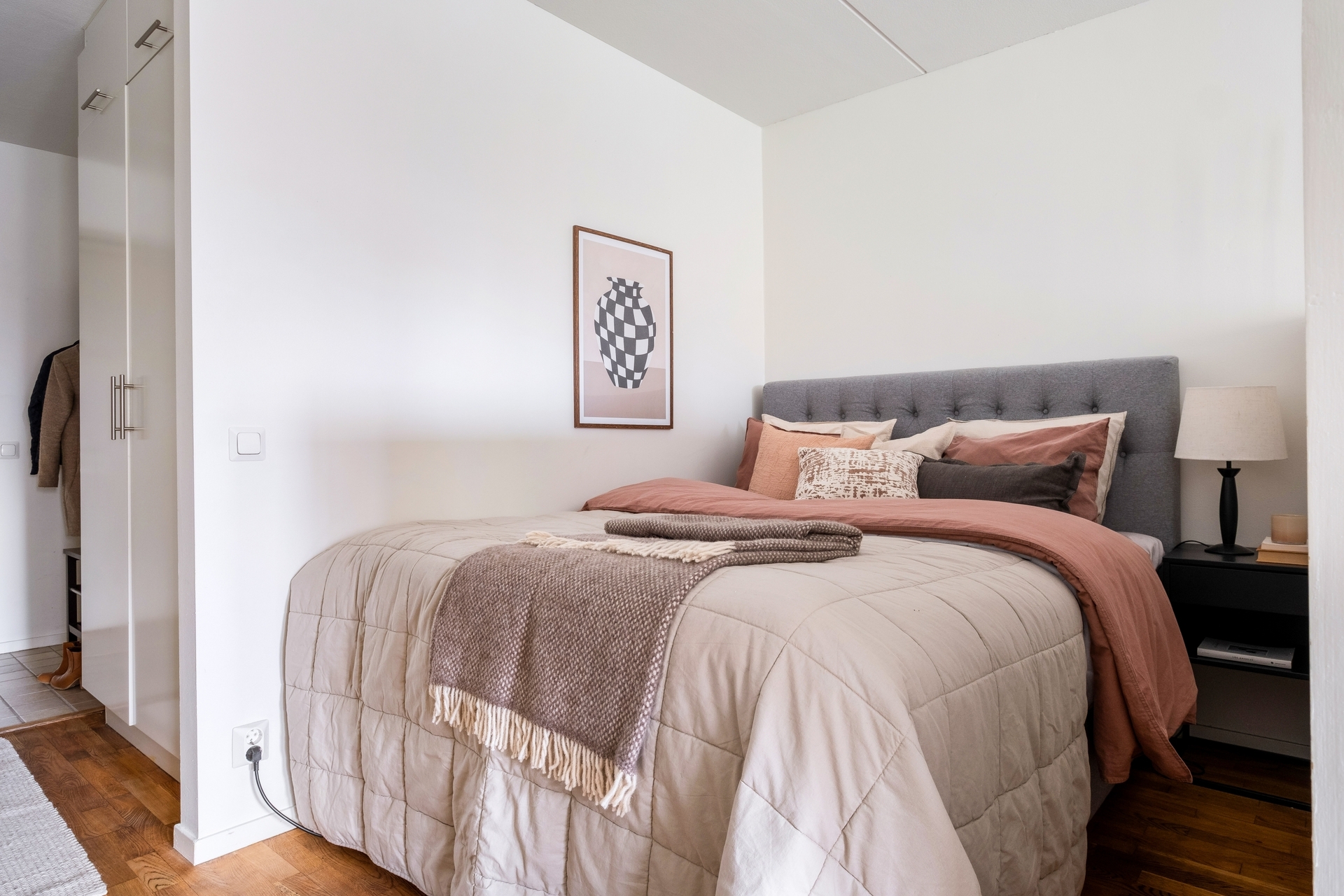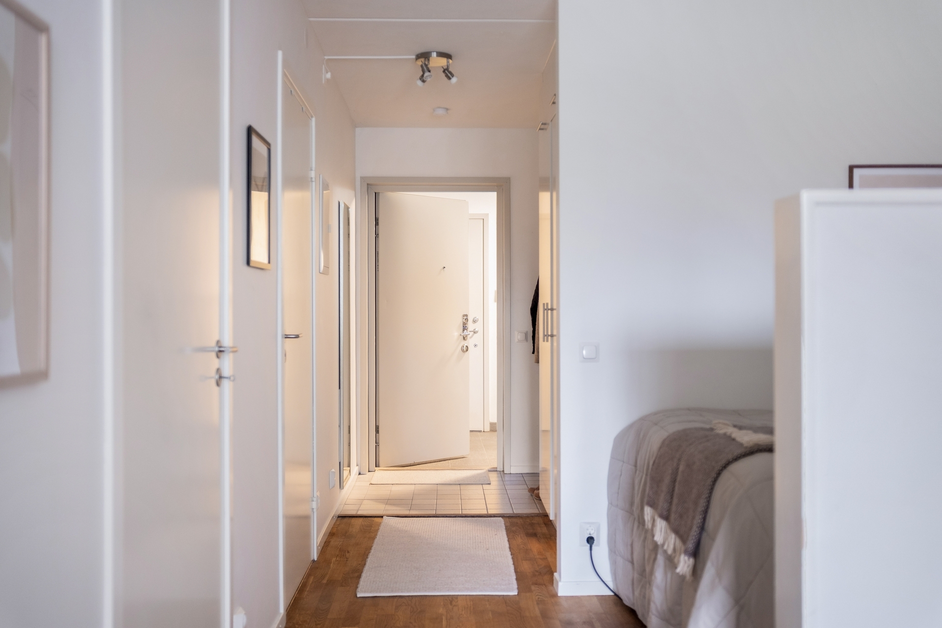 Högt upp i huset, walk-in-closet och solig inglasad balkong i väst.