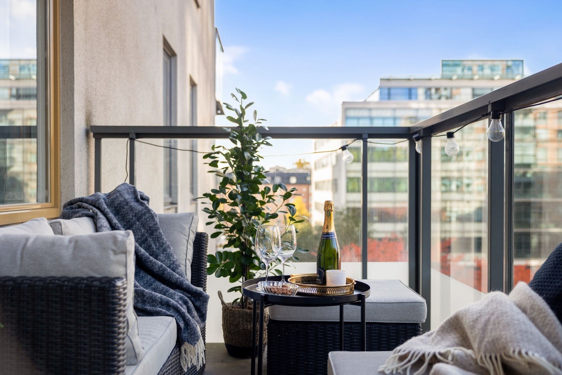 Lungt gårdsläge - balkong med eftermiddagssol.