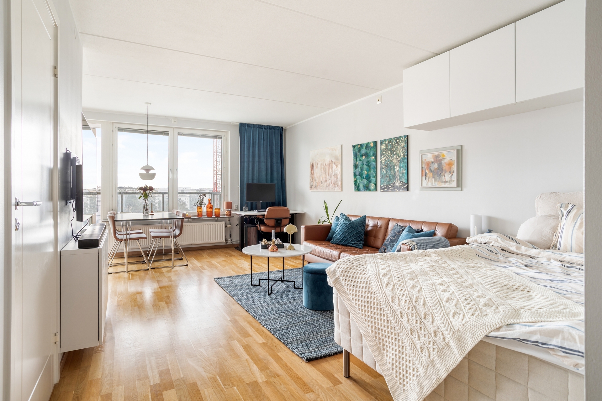Högt upp med sjöutsikt och loggia. Möjlig mini 2:a!