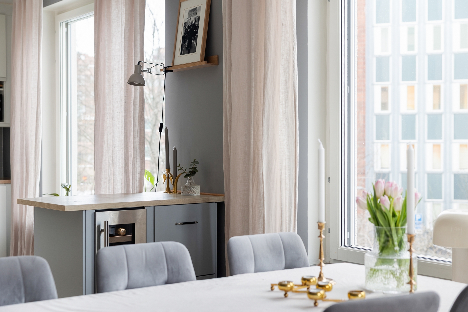 Hörnlägenhet med stor balkong.