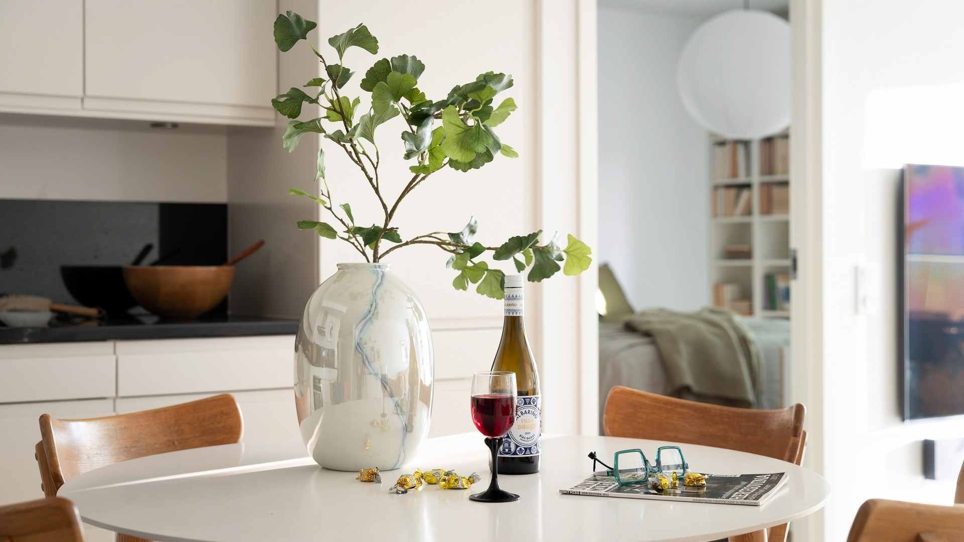 Genomtänkt hem med balkong och yteffektiva lösningar